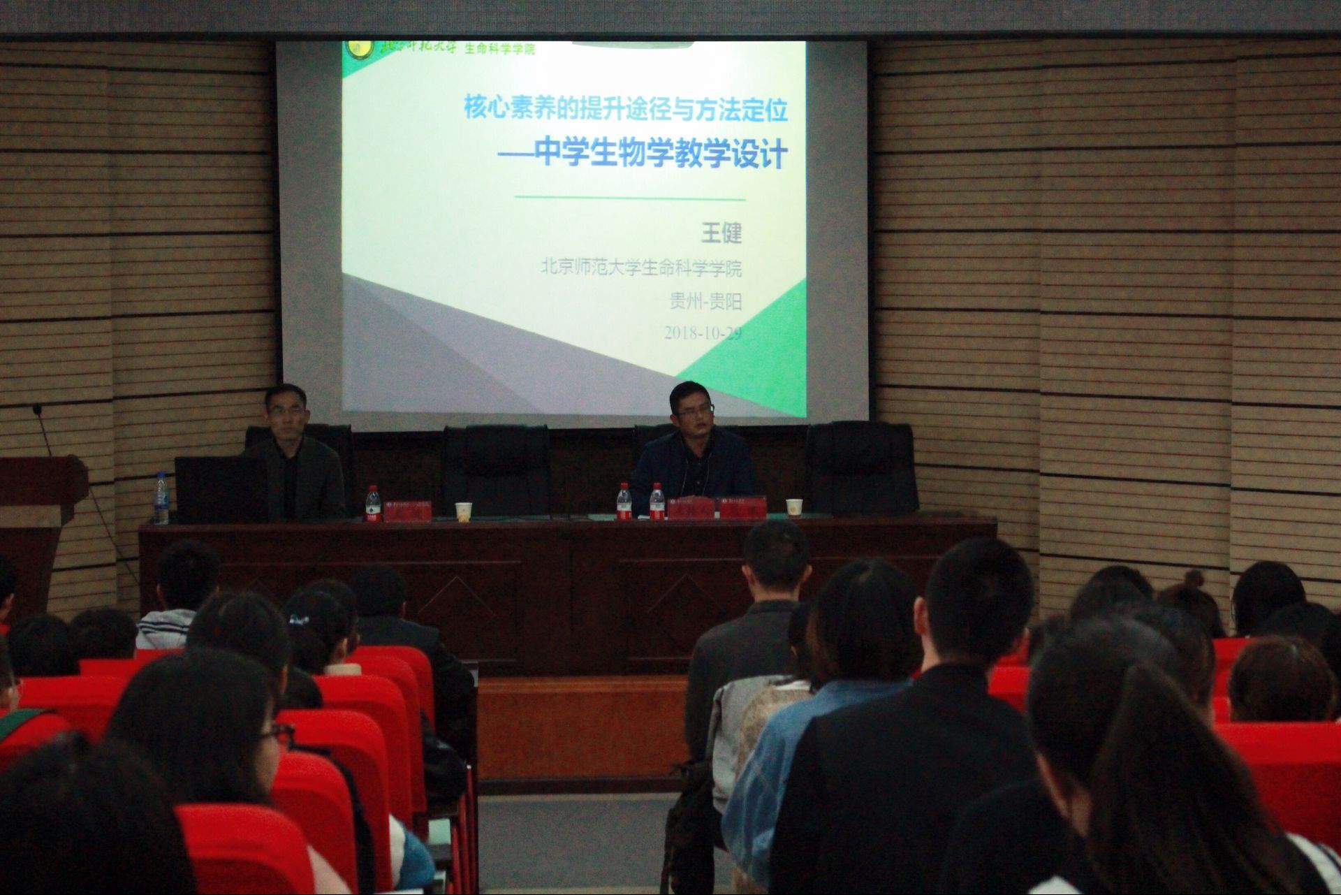 10月29日下午寧靜樓150階梯教室,生物科學學院邀請北京師范大學博士生導師、教授王健,做主題為“核心素養(yǎng)的提升途徑和方法定位--中學生物學教學設計”的講座。我院2016級、2017級生物科學專業(yè)全體同學以及生科院副院長孟澤彬、專業(yè)負責人王自布、教學科研科科長吳超參加了講座,講座由劉訊副院長主持。