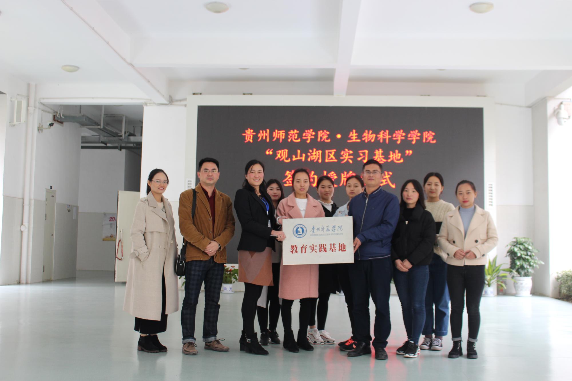為了解我校實(shí)習(xí)生的實(shí)習(xí)情況,實(shí)現(xiàn)教育資源的共享和提高雙方的合作質(zhì)量,使高等教育更好地服務(wù)于基礎(chǔ)教育,為國家培養(yǎng)更多的能夠適應(yīng)基礎(chǔ)教育改革的合格教師,10月24日,生物科學(xué)學(xué)院副院長劉訊、應(yīng)用生物科學(xué)專業(yè)負(fù)責(zé)人兼實(shí)習(xí)指導(dǎo)老師廖興剛博士一行到觀山湖區(qū)會展城第二中學(xué)看望實(shí)習(xí)生并舉行教育實(shí)踐基地簽約授牌儀式。觀山湖區(qū)會展城第二中學(xué)校長胡娟、教務(wù)主任楊華、教職工和我校實(shí)習(xí)生參加活動。