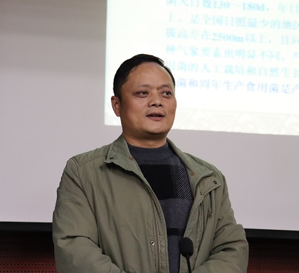 劉訊首先簡(jiǎn)要介紹了朱國(guó)勝的研究情況。講座中,朱國(guó)勝?gòu)氖乘幱镁谫F州發(fā)展的地理氣候、區(qū)位交通、菌材菌種優(yōu)勢(shì)及創(chuàng)新型創(chuàng)業(yè)要點(diǎn)兩個(gè)方面,結(jié)合自身實(shí)際經(jīng)驗(yàn)與貴州道地特色趨勢(shì),深入淺出地進(jìn)行講解。他強(qiáng)調(diào)貴州在發(fā)展食用菌時(shí)應(yīng)差異化發(fā)展。他指出在進(jìn)行菌材選擇時(shí),應(yīng)立足于貴州本土資源條件優(yōu)勢(shì):松、杉及茶樹(shù),找到并突破瓶頸,創(chuàng)新發(fā)展。緊接著以火麻稈"立體內(nèi)部循環(huán)經(jīng)濟(jì)"循環(huán)利用的例子,繪聲繪色地告訴同學(xué)們應(yīng)發(fā)散思維邏輯,面對(duì)問(wèn)題要靈活應(yīng)變。在談到自主創(chuàng)業(yè)方面時(shí),他指出應(yīng)注意幾個(gè)點(diǎn):一要注意創(chuàng)業(yè)方式,抓好頭尾,手把手示范性教,調(diào)動(dòng)老百姓的積極性;二要注意"模式要對(duì),技術(shù)要到位";三要保證種植標(biāo)準(zhǔn)化及特色品牌的創(chuàng)建。講座獲得了同學(xué)們熱烈的掌聲。
