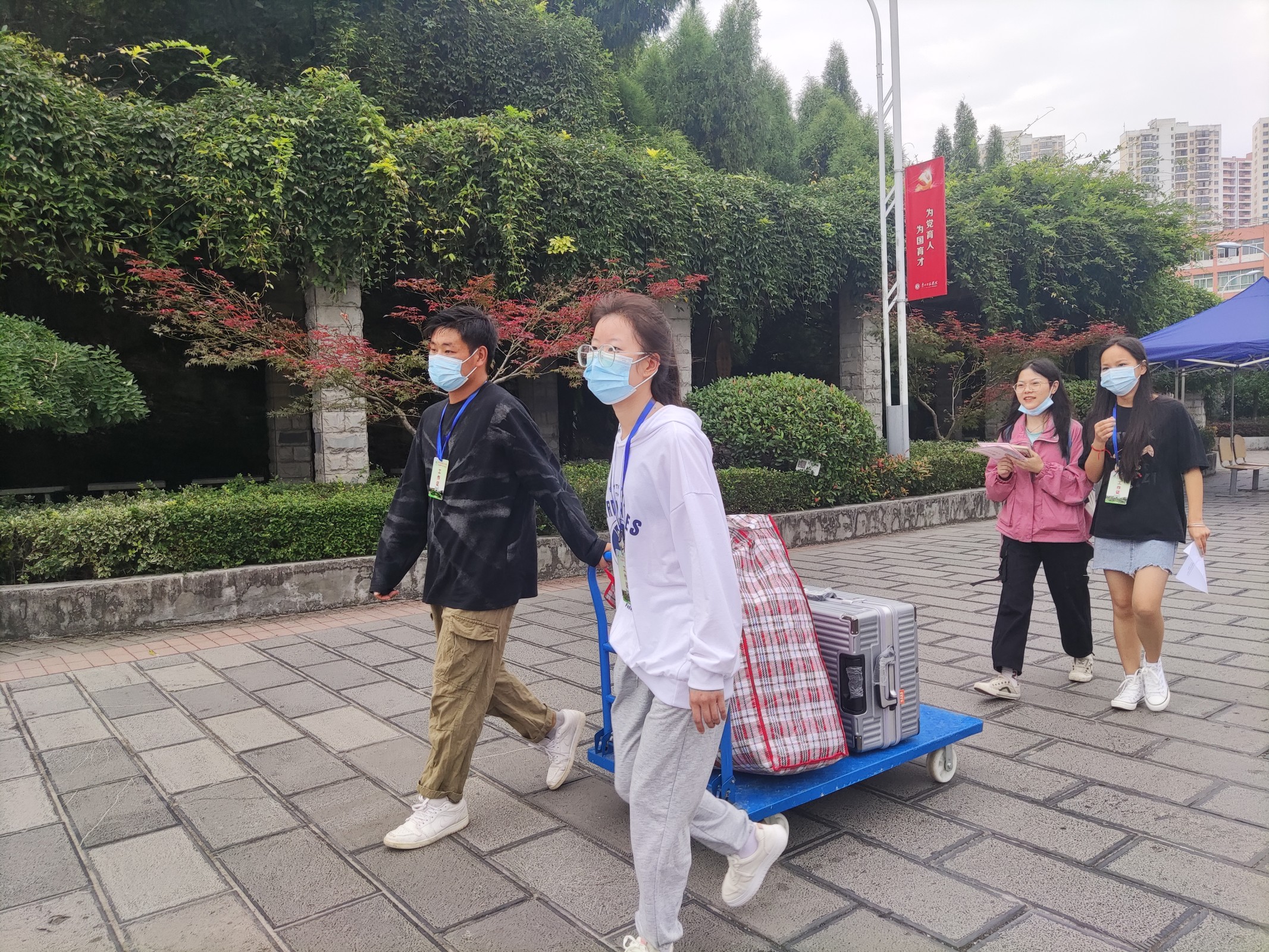 微風(fēng)徐徐的早上,迎新工作者們帶著準(zhǔn)備已久的迎新物資,早早的做好迎新現(xiàn)場布置,以確保迎新工作順利完成。本次迎新工作分工明確,同時也有一個亮點就是所有的報道、核驗、入住宿舍都在一條線上,確保新生能夠有序、有效完成相關(guān)手續(xù),同時也避免同學(xué)們擁擠的狀況。由各學(xué)院引領(lǐng)新生在學(xué)校門口的對應(yīng)的學(xué)院身份核驗點,完成查驗通知書、掃健康碼、行程碼、測體溫等工作;隨后,前往鑒湖旁辦理相關(guān)手續(xù),完成所有的入學(xué)手續(xù),工作者幫新生搬行李送去宿舍,并協(xié)助他們辦理入住手續(xù)。在迎新過程,我院領(lǐng)導(dǎo)親為其中,同時輔導(dǎo)員以及各位老師以最飽滿的精神和最溫和的態(tài)度不斷給新生答疑解惑,引領(lǐng)報道,各個志愿者也不畏烈日為新生們搬運行李。由于疫情原因,本次家長無法進(jìn)校,這無形之中加大了本次迎新工作的難度,但在全院師生齊心協(xié)力、各位家長新生的理解與配合使得本次迎新活動順利進(jìn)行。下午6時,本次迎新活動所有新生全部順利報道后圓滿結(jié)束。