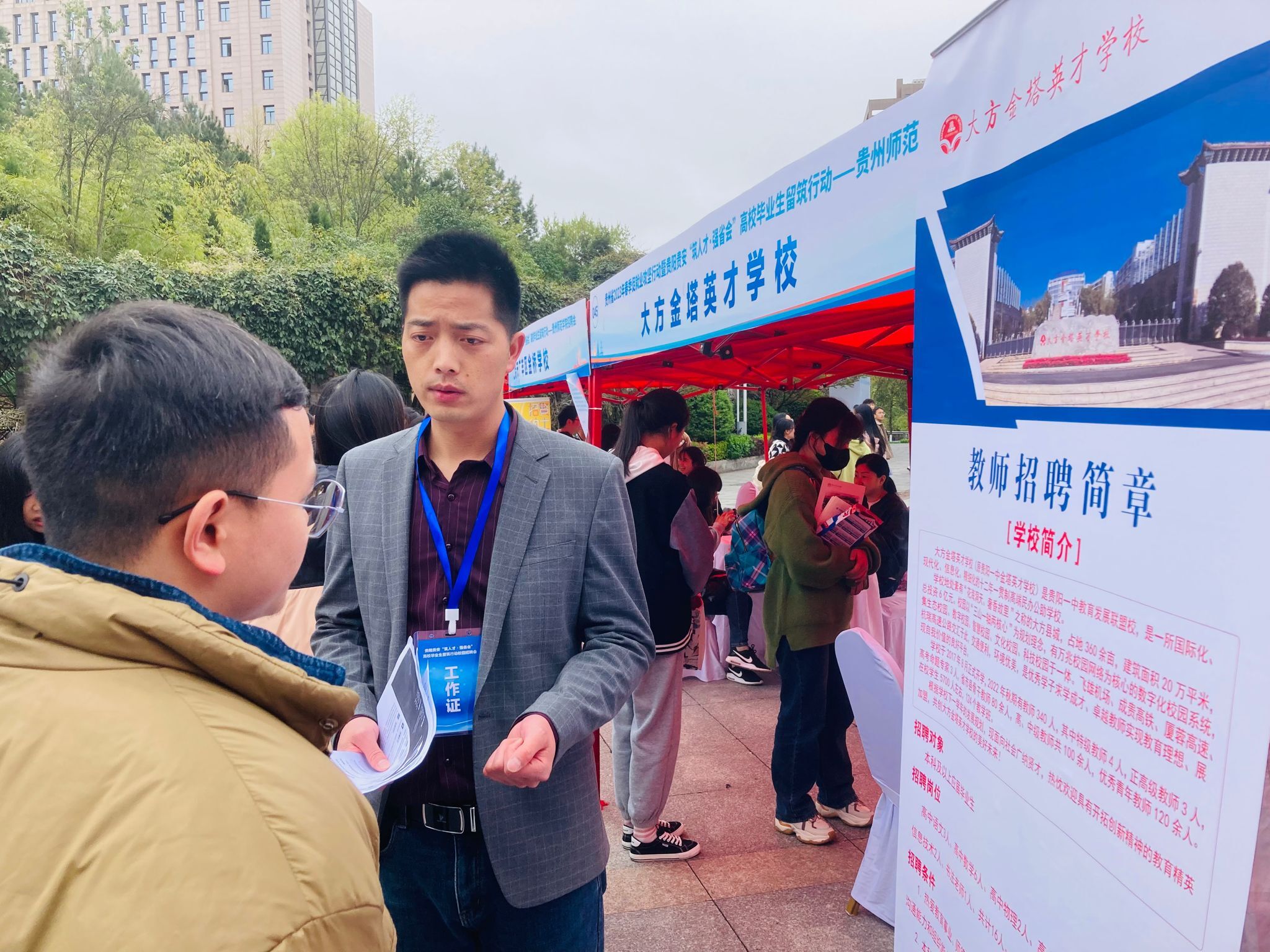 為深入貫徹落實(shí)黨中央、國(guó)務(wù)院穩(wěn)就業(yè)、保就業(yè)決策部署,搶抓春招黃金季,全力攻堅(jiān)促就業(yè),貴州師范學(xué)院于3月23日舉辦“搶抓春季招聘期 全力攻堅(jiān)促就業(yè)——貴州師范學(xué)院校園招聘會(huì)”。貴州師范學(xué)院校長(zhǎng)韋維、副校長(zhǎng)任潔到招聘會(huì)現(xiàn)場(chǎng)指導(dǎo)。