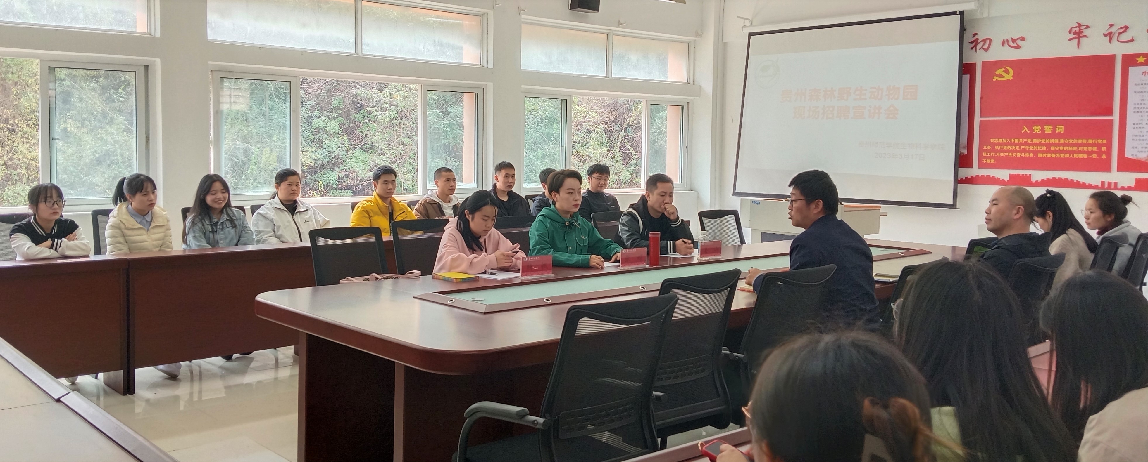 貴州森林野生動(dòng)物園的負(fù)責(zé)人張超給同學(xué)們介紹了公司的基本情況,發(fā)展理念、前景,取得的相關(guān)成果及未來發(fā)展規(guī)劃等。隨后,對(duì)公司的招聘流程、相關(guān)崗位的職責(zé)和要求、人才培養(yǎng)與引進(jìn)計(jì)劃、福利待遇、晉升空間及考核制度、辦公環(huán)境等方面作了詳細(xì)介紹。并針對(duì)學(xué)生提出的問題,一一進(jìn)行了現(xiàn)場(chǎng)解答。