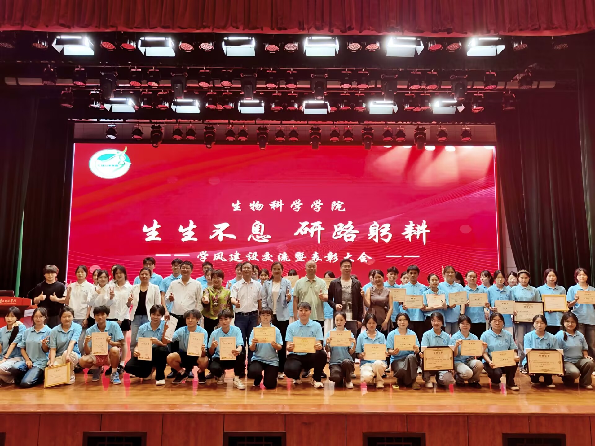 6月11日下午,生物科學學院在逸夫樓演播廳舉辦“生生不息·研路躬耕”學風建設交流活動暨表彰大會。出席活動的領(lǐng)導和老師有學院黨委書記孫秀華、院長任翠娟、黨委副書記王玨、副院長孟澤彬、副院長錢長江、應用生物科學專業(yè)系主任程搏幸、輔導員梁濤、李育芳及團委老師張彩艷,活動由2024級野保班張應來、宋宜聯(lián)主持。