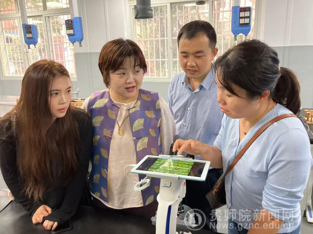 會上,貴州師范大學(xué)附屬中學(xué)高三年級組教師吳濤對王玨一行的到訪表示熱烈歡迎,他詳細(xì)介紹了學(xué)校生物學(xué)課程的教學(xué)現(xiàn)狀、師資隊伍建設(shè)情況以及當(dāng)前面臨的生物教師需求缺口,并針對性地提出了未來在教學(xué)資源共享、科研項目合作等方面的具體構(gòu)想。王玨從高校人才培養(yǎng)的角度出發(fā),重點闡述了生物科學(xué)專業(yè)在課程設(shè)置、實踐教學(xué)等方面的思路,強(qiáng)調(diào)要加強(qiáng)與中學(xué)教育的銜接。鄧可結(jié)合多年教學(xué)經(jīng)驗,對高中生物學(xué)課堂教學(xué)方法、實驗教學(xué)設(shè)計等方面給予了專業(yè)指導(dǎo)。梁濤和李育芳聚焦于新課標(biāo)背景下的五育融合,分別就如何在生物學(xué)科中滲透音樂、文學(xué)等美育元素、如何實現(xiàn)生物學(xué)與其他學(xué)科的交叉融合等議題提出了建設(shè)性意見。會后王玨一行還參觀了貴州師范大學(xué)附屬中學(xué)生物實驗室。