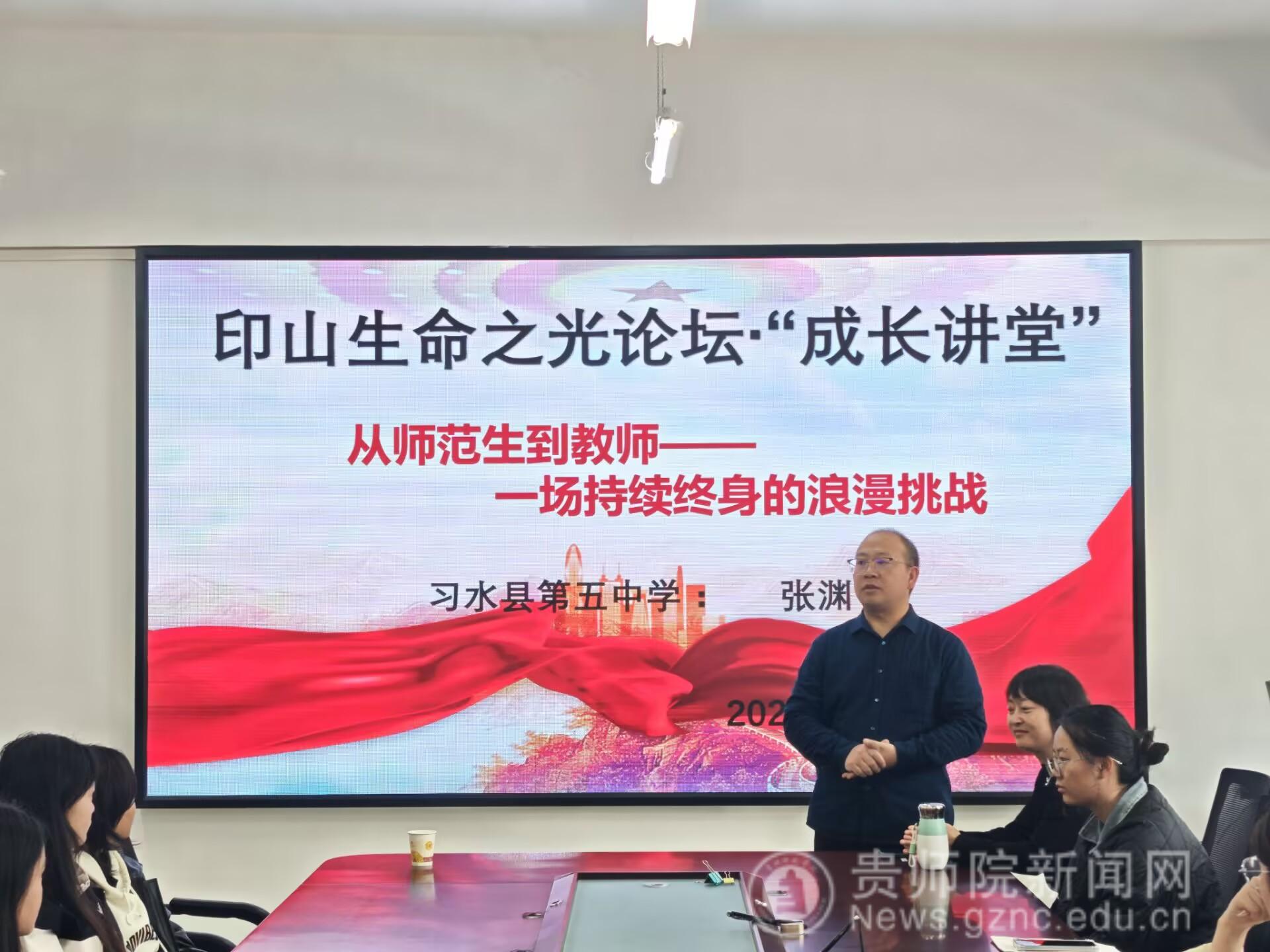 本網(wǎng)訊,11月7日,生物科學(xué)學(xué)院“印山生命之光論壇·成長(zhǎng)講堂”在第四屆教學(xué)節(jié)期間成功舉辦。本次活動(dòng)特邀我校優(yōu)秀畢業(yè)生張淵重返母校,以“從師范生到教師——一場(chǎng)持續(xù)終身的浪漫挑戰(zhàn)”為主題,與學(xué)弟學(xué)妹們分享從教心得。