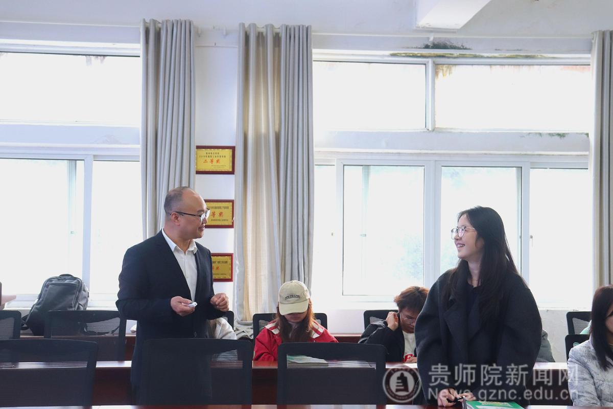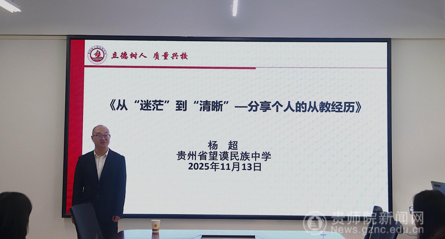 為助力學(xué)生明晰職業(yè)發(fā)展方向,汲取從教經(jīng)驗,11月13日,生物科學(xué)學(xué)院特邀貴州省望謨民族中學(xué)楊超老師,于寧靜樓611開展《從“迷茫”到“清晰”——分享個人的從教經(jīng)歷》主題學(xué)術(shù)講座。本次講座由學(xué)院副院長孟澤彬主持,24應(yīng)生一班學(xué)生到場聆聽。