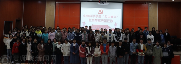 為了以先進(jìn)思想、科學(xué)理論、主流文化、主流價(jià)值引領(lǐng)和涵育青年,以優(yōu)秀青年來示范帶動(dòng)更多青年,11月22日,生物科學(xué)學(xué)院于學(xué)術(shù)講堂開展了以“‘印山青年’新思想宣講”為主題的宣講活動(dòng)。參與本次活動(dòng)的為預(yù)備黨員甘圣義、第八、九期發(fā)展對(duì)象、第48、49、50期入黨積極分子、團(tuán)委學(xué)生會(huì)副部長(zhǎng)以上干部以及23名宣講選手。第49期入黨積極分子文學(xué)交為本次活動(dòng)主持人。