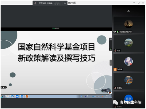 1月27日晚,生物科學(xué)學(xué)院教師支部全體黨員教師通過騰訊會(huì)議開展1月份主題黨日活動(dòng)。距2021年國家自然科學(xué)基金項(xiàng)目申報(bào)僅剩2個(gè)月左右,為提升學(xué)院教師國自然撰寫水平和技巧,本次活動(dòng)特請(qǐng)支部教師李劍鋒教授為支部成員深入講解“國家自然科學(xué)基金新政策解讀及撰寫技巧”。會(huì)議由教師支部書記張運(yùn)林主持。