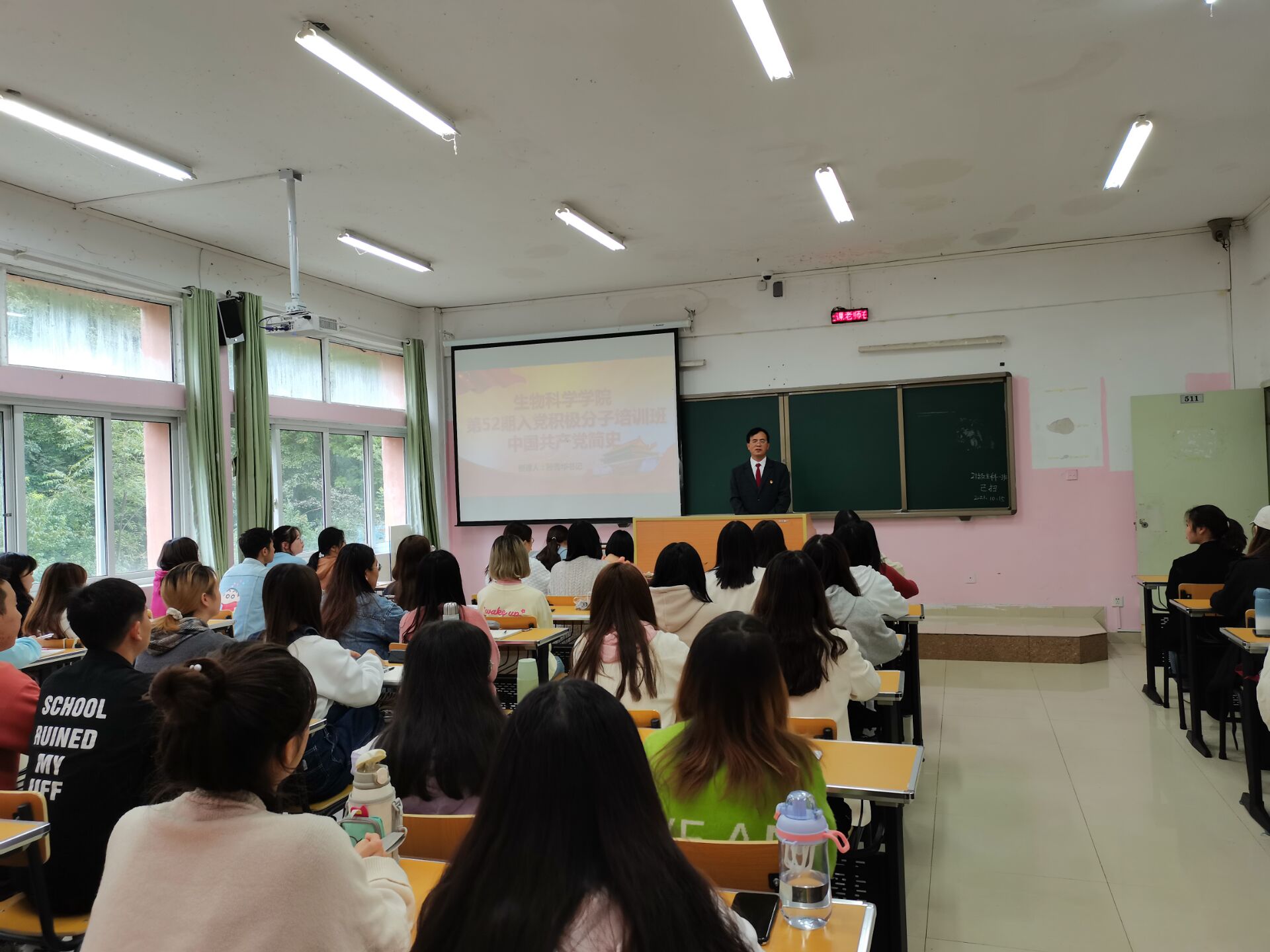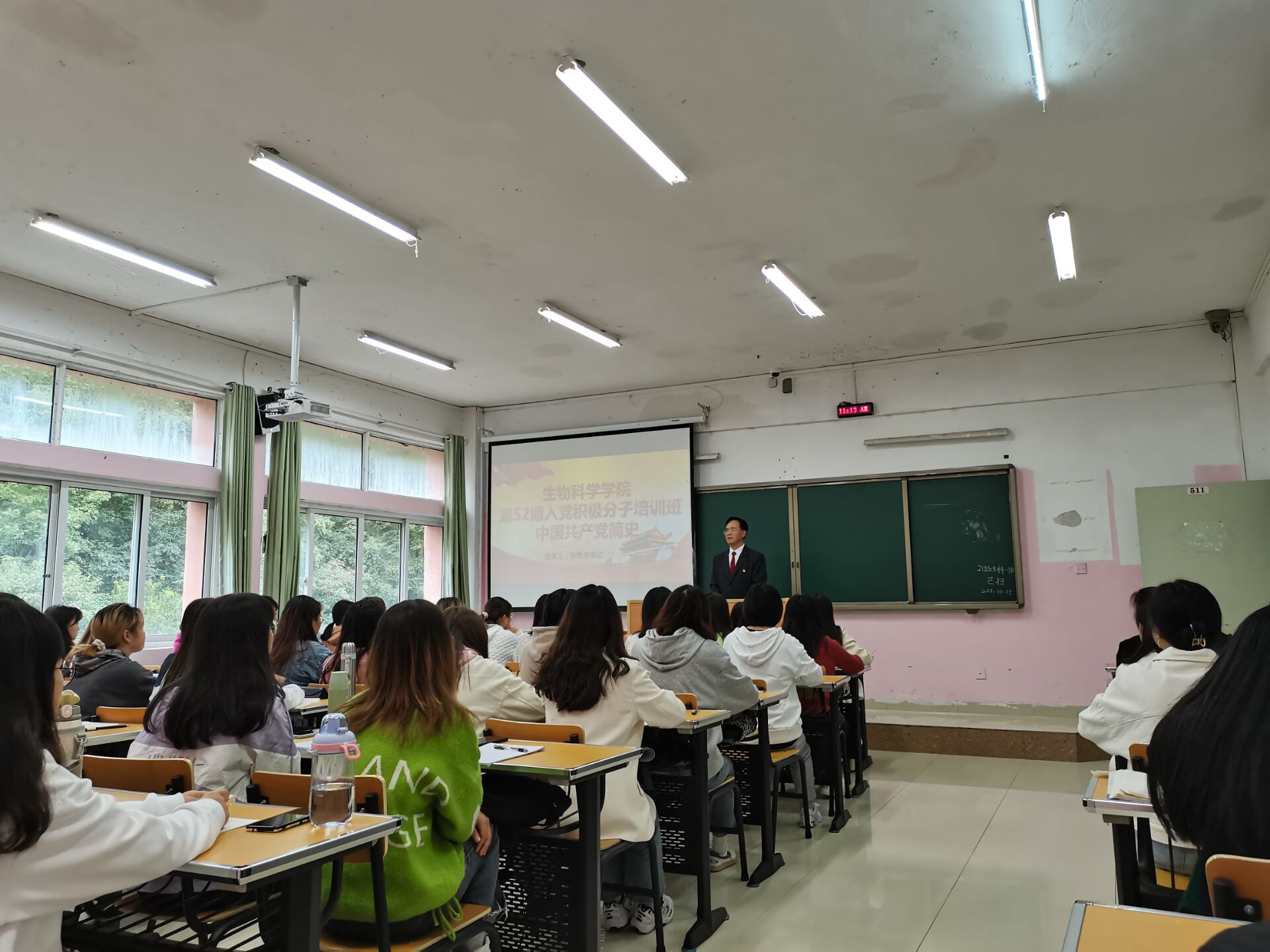 為了加強對入黨積極分子的培訓工作,深化黨的性質(zhì)與指導思想,進一步提高入黨積極分子的黨的基礎理論素養(yǎng),10月16日生物科學學院在致遠樓511教室開展了第五十二期入黨積極分子黨校培訓課程——中國共產(chǎn)黨簡史。生物科學學院黨總支書記孫秀華受邀擔任主講,本期的51名入黨積極分子參與了此次活動。