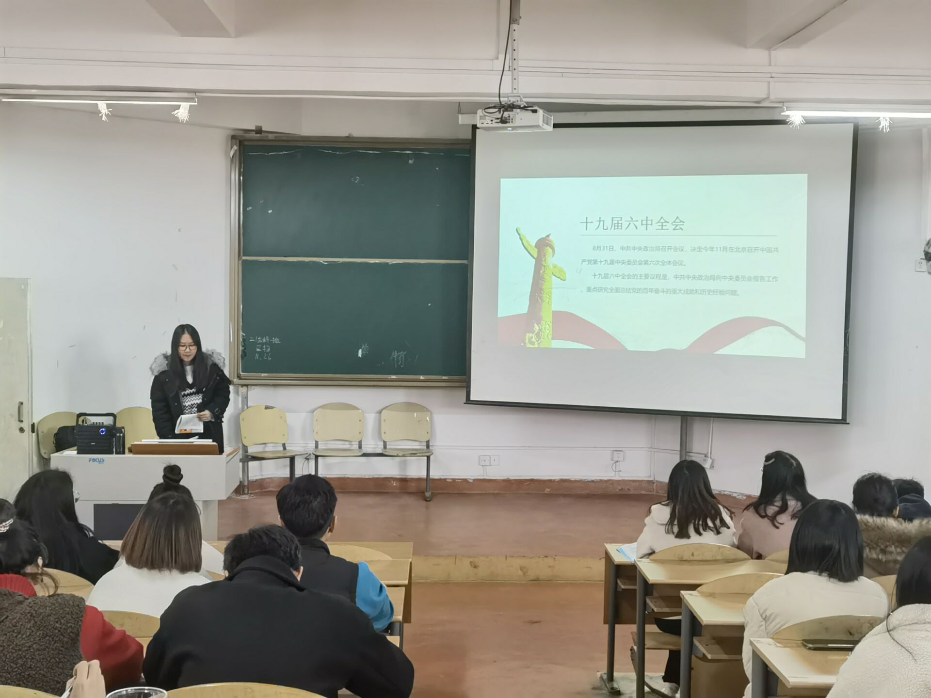 為深入學(xué)習(xí)貫徹中國(guó)共產(chǎn)黨第十九屆中央委員會(huì)第六次全體會(huì)議的重要精神,認(rèn)真理解和把握黨的百年奮斗所取得的重大成就和歷史經(jīng)驗(yàn),11月27日15:00—16:00,生物科學(xué)學(xué)院應(yīng)用生物科學(xué)學(xué)生黨支部于寧?kù)o樓537室由入黨積極分子羅愛(ài)霞主持開(kāi)展“學(xué)習(xí)黨的十九屆六中全會(huì)精神”主題黨日活動(dòng)。參與本次活動(dòng)的有應(yīng)用生物科學(xué)專(zhuān)業(yè)學(xué)生黨支部書(shū)記、全體正式黨員、預(yù)備黨員、入黨積極分子。