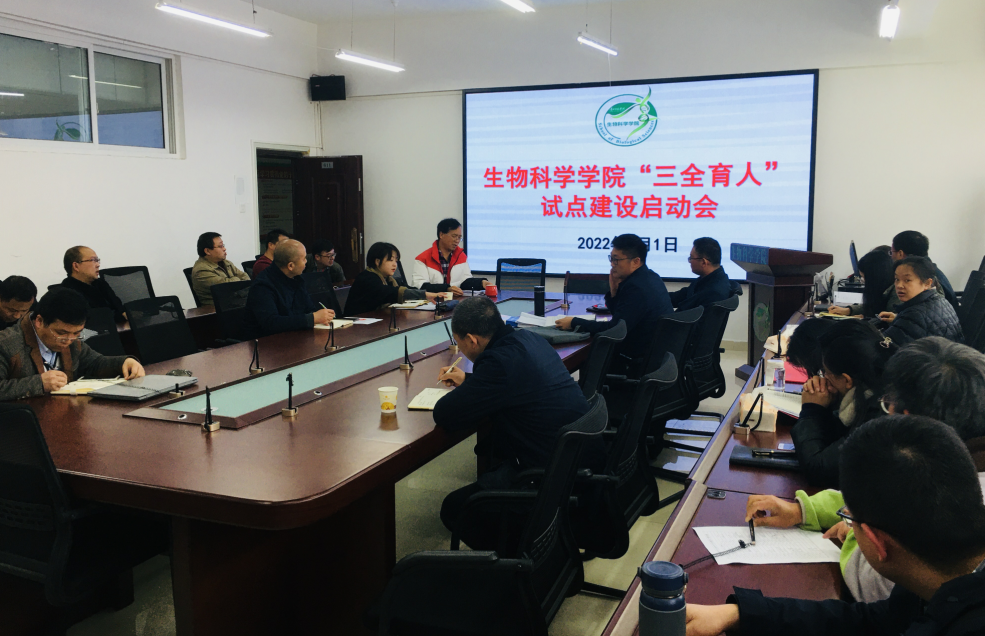 為進一步增強做好新時代育人工作的責任感和使命感,深入落實立德樹人根本任務,4月1中午,生物科學學院在寧靜樓611學院會議室召開“三全育人”工作啟動會,會議由學院黨委書記孫秀華主持,全體教職工參加。