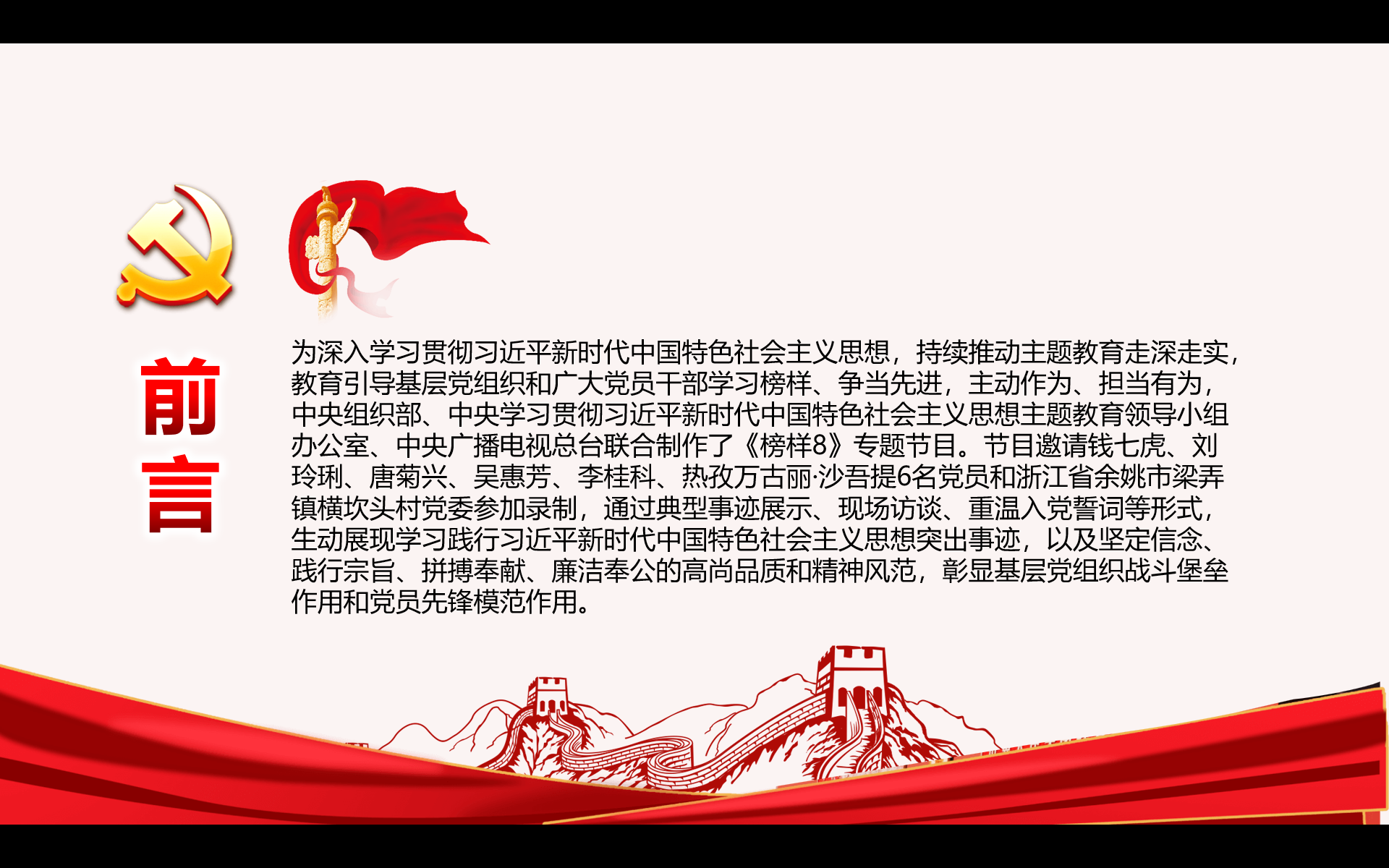 最后主持人作活動(dòng)總結(jié)并宣布活動(dòng)結(jié)束,此活動(dòng)讓全體黨員同志、預(yù)備黨員同志一起學(xué)習(xí)領(lǐng)會(huì)到了教育是學(xué)習(xí)榜樣,就要思想上真觸動(dòng)、行動(dòng)上真落實(shí)。要爭(zhēng)做榜樣的忠實(shí)“粉絲”,以榜樣為標(biāo)尺,從里到外、從上到下“丈量”自身思想境界、素質(zhì)能力和作風(fēng)形象等方面與榜樣的距離,讓思想和行動(dòng)時(shí)刻向榜樣看齊,將榜樣精神內(nèi)化于心、外化于行。