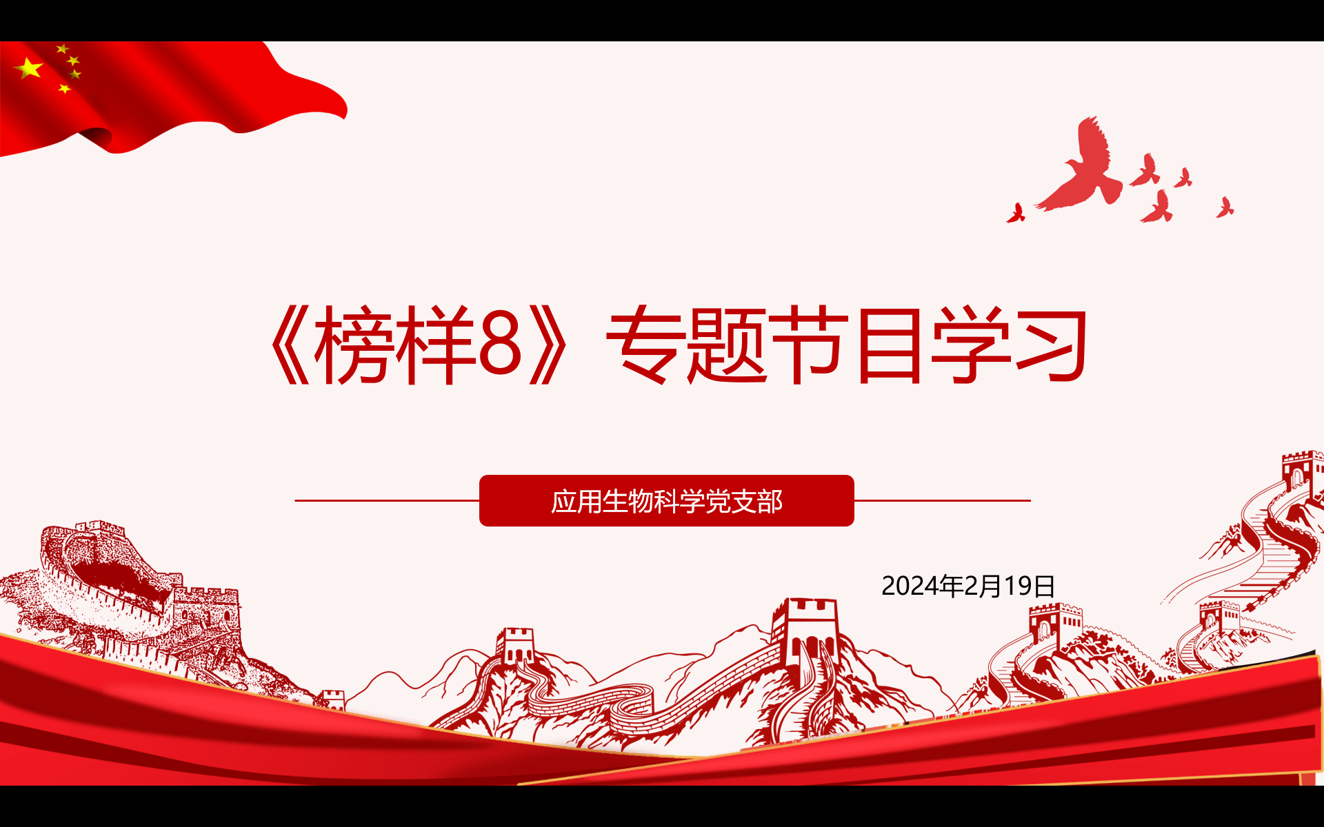 為深入學(xué)習(xí)貫徹習(xí)近平新時(shí)代中國特色社會(huì)主義思想,持續(xù)推動(dòng)主題教育走深走實(shí),教育引導(dǎo)基層黨組織和廣大黨員干部學(xué)習(xí)榜樣、爭(zhēng)當(dāng)先進(jìn),主動(dòng)作為、擔(dān)當(dāng)有為,中央組織部、中央學(xué)習(xí)貫徹習(xí)近平新時(shí)代中國特色社會(huì)主義思想主題教育領(lǐng)導(dǎo)小組辦公室、中央廣播電視總臺(tái)聯(lián)合制作了《榜樣8》專題節(jié)目。2月19日,生物科學(xué)學(xué)院應(yīng)用生物科學(xué)專業(yè)學(xué)生黨支部與騰訊會(huì)議開展“《榜樣8》專題節(jié)目學(xué)習(xí)”主題黨日活動(dòng)。會(huì)議由黨支部書記程搏幸同志主持,全體黨員以及預(yù)備黨員同志參與。