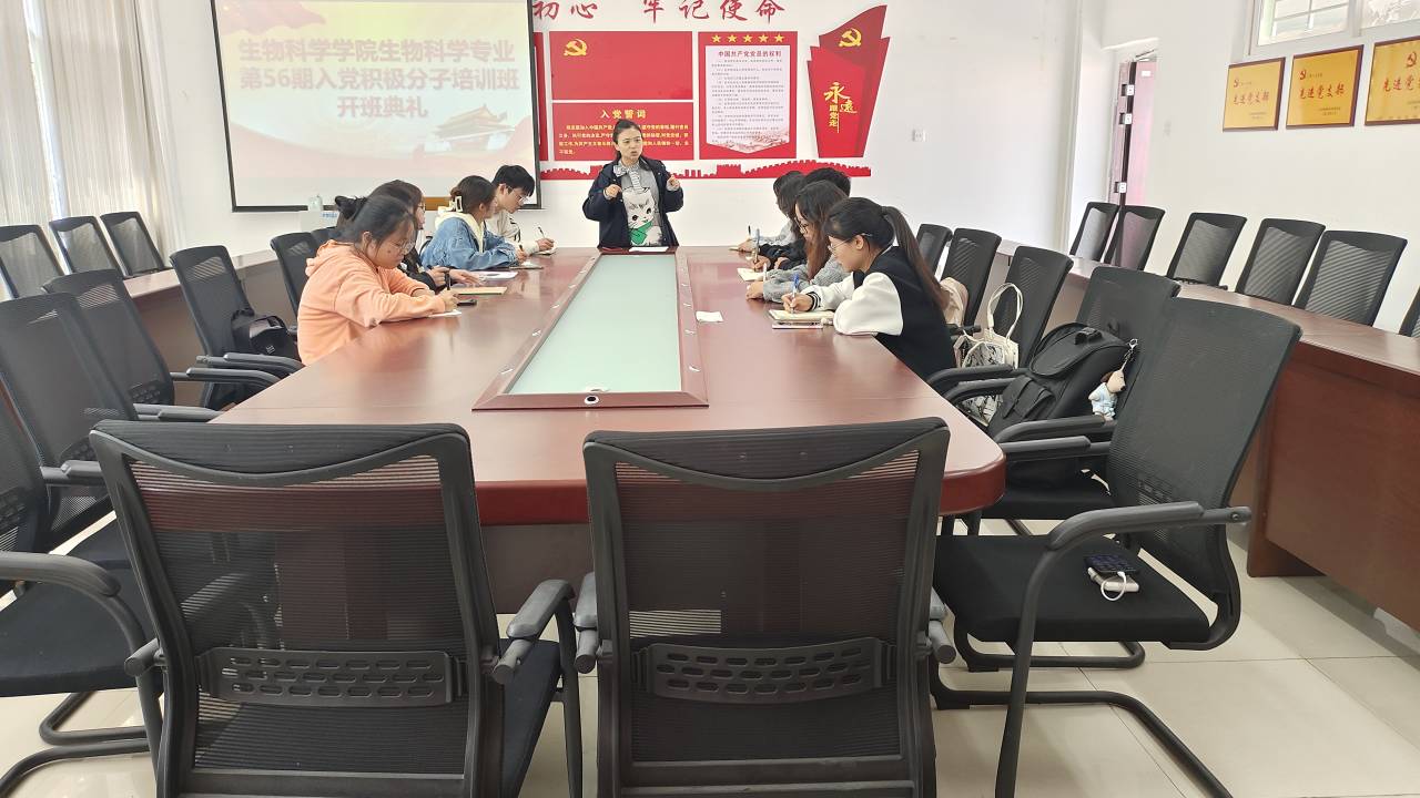為提高我院生物科學(xué)專業(yè)第56期入黨積極分子的思想覺(jué)悟,端正入黨動(dòng)機(jī),10月9日,我院生物科學(xué)專業(yè)黨支部在致遠(yuǎn)樓608召開(kāi)了第56期入黨積極分子培訓(xùn)班開(kāi)班典禮暨《鑄牢中華民族共同體意識(shí)》專題黨課。本次開(kāi)班典禮邀請(qǐng)學(xué)院黨委書記孫秀華參加,并擔(dān)任此次黨課主講人;活動(dòng)由學(xué)生黨支部書記王溯主持,第56期入黨積極分子全體參與。
