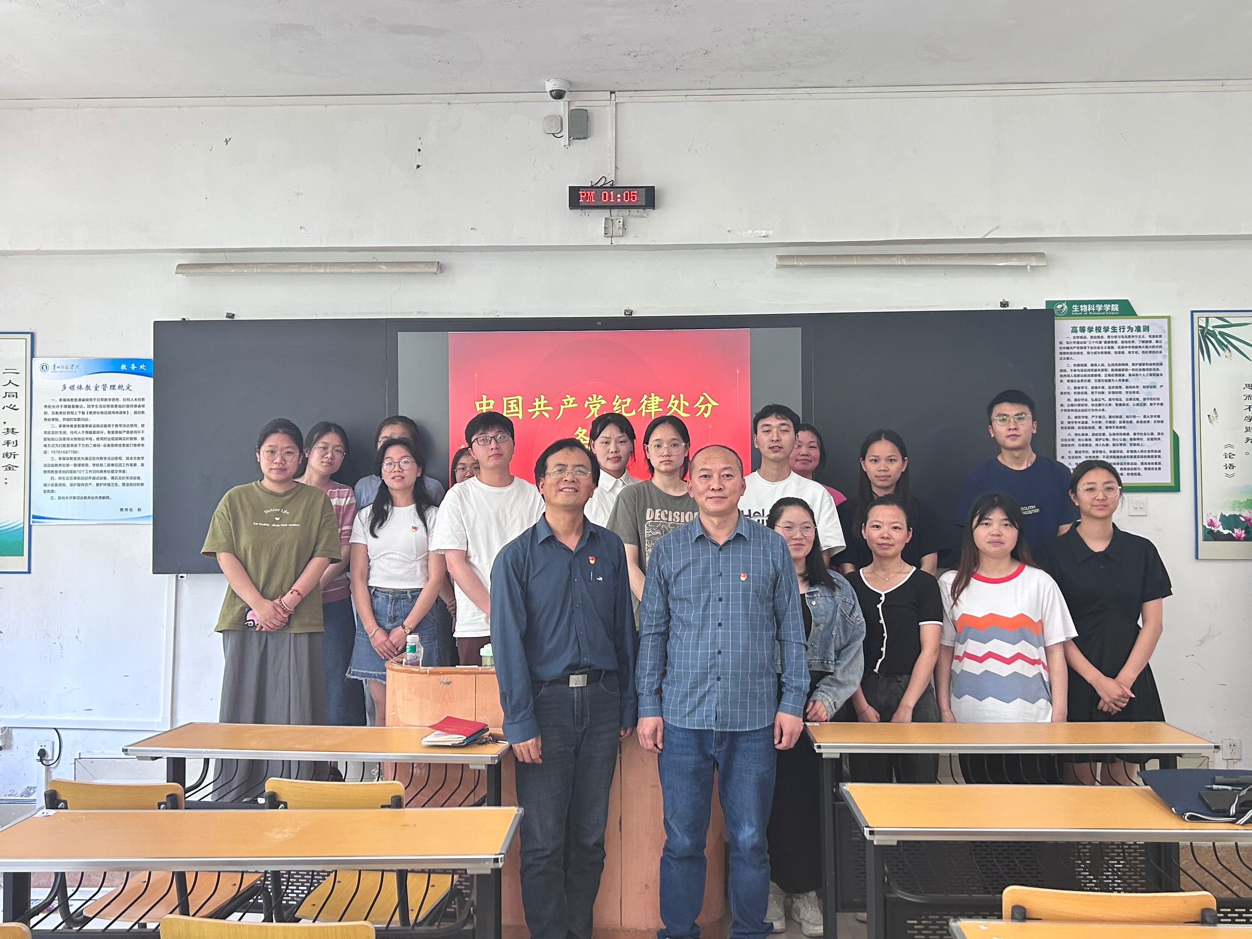 “紀律是勝利之本,只有嚴格的紀律,才會有堅強的集體。”為進一步加強黨風廉政建設,強化全體黨員黨紀觀念和規(guī)矩意識,堅持以習近平總書記關(guān)于全面從嚴治黨和加強黨風廉政建設系列重要指示精神為指導,深入貫徹落實二十大精神,4月29日,生物科學學院應用生物科學專業(yè)學生黨支部于致遠樓513教室開展黨紀學習教育集中學習。會議由黨支部副書記孫秀華同志主持,參會人員有黨支部委員丁波、符裕紅、伍林濤,全體學生黨員以及預備黨員。