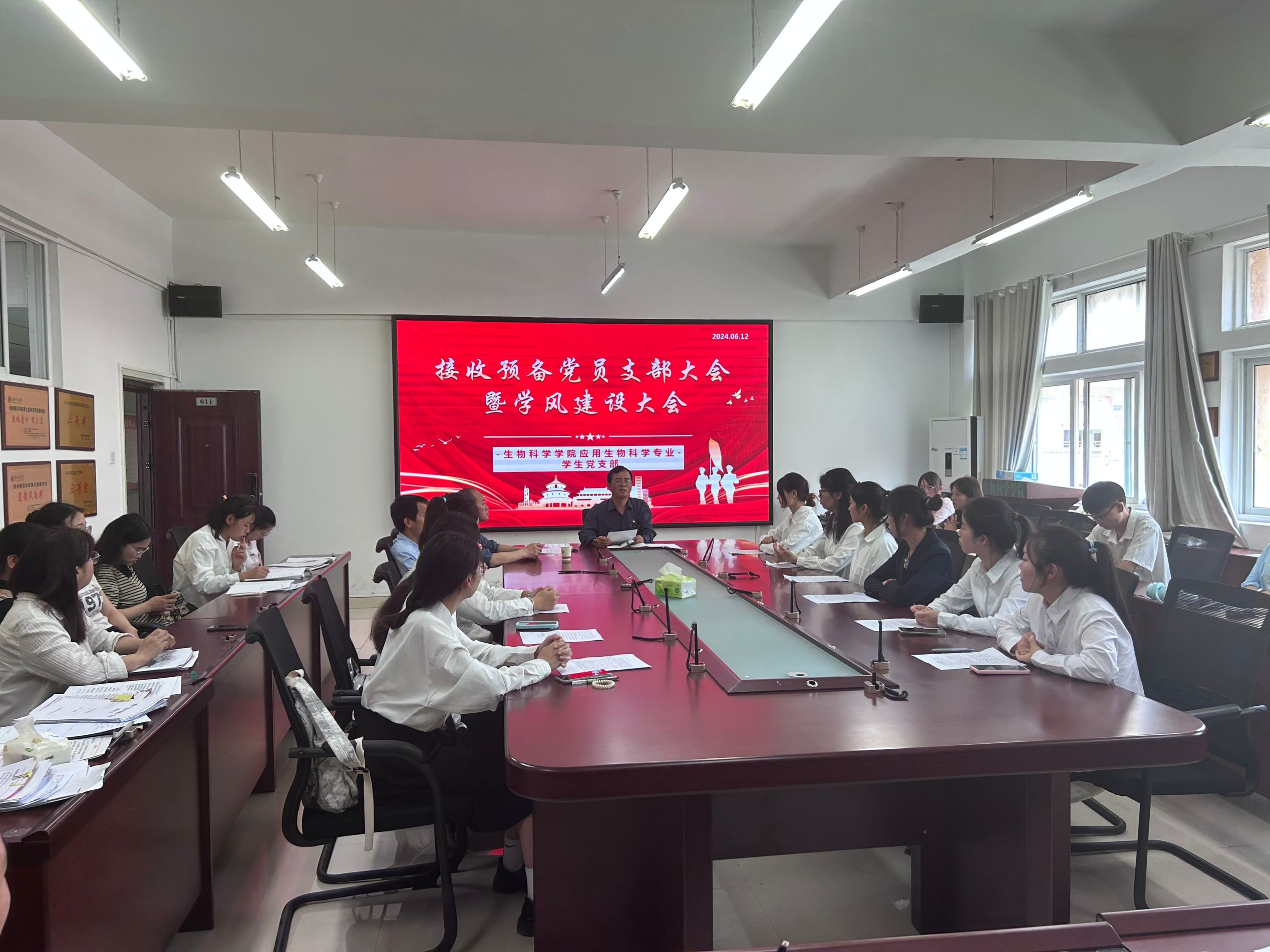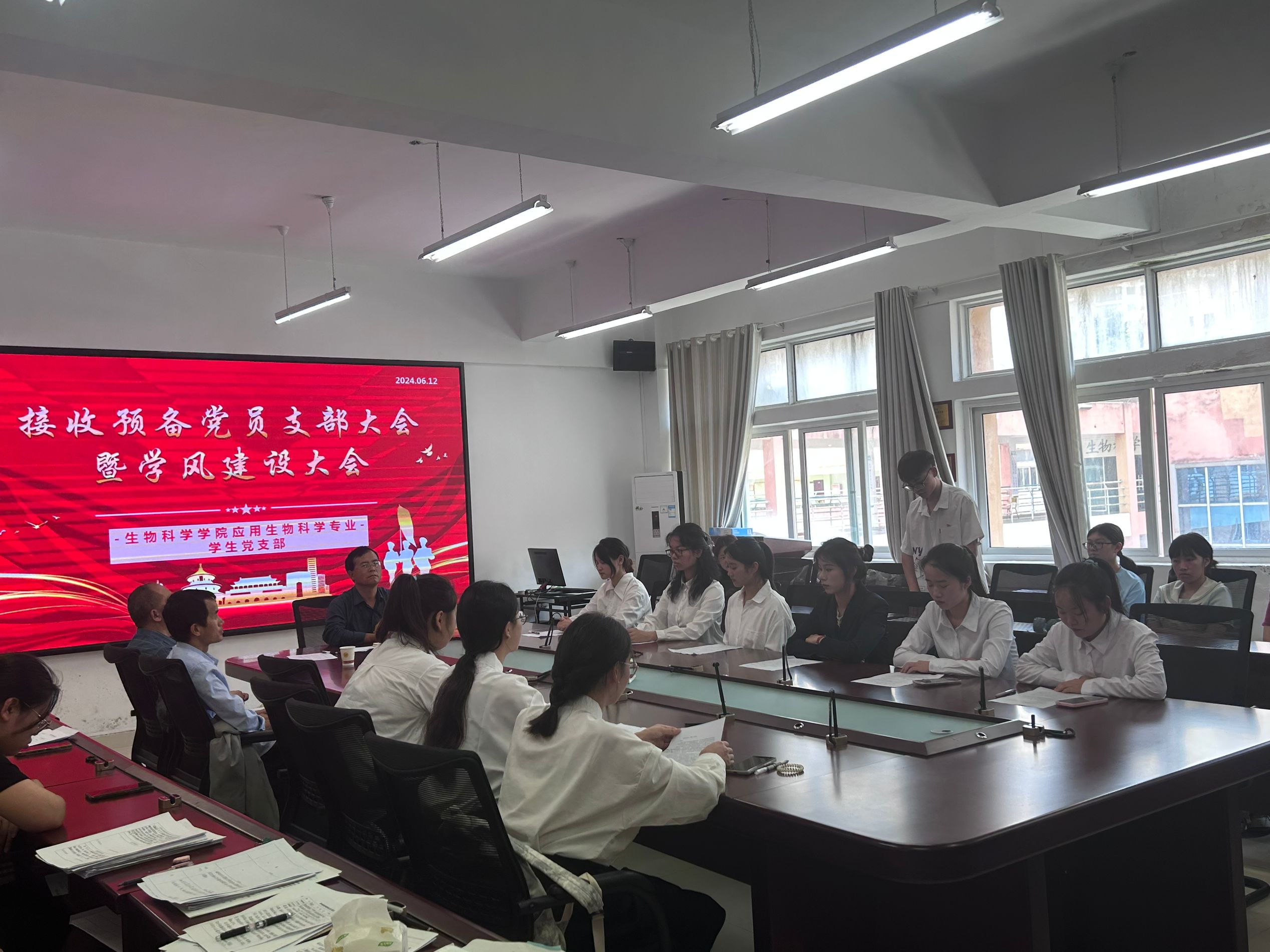 6月12日,生物科學(xué)學(xué)院應(yīng)用生物科學(xué)專業(yè)學(xué)生黨支部于生物科學(xué)學(xué)院611會議室開展對接收金開英等9名同志為預(yù)備黨員的問題進(jìn)行討論。會議由黨支部副書記孫秀華同志主持,支部委員伍林濤同志、丁波同志、支部學(xué)生黨員參會。