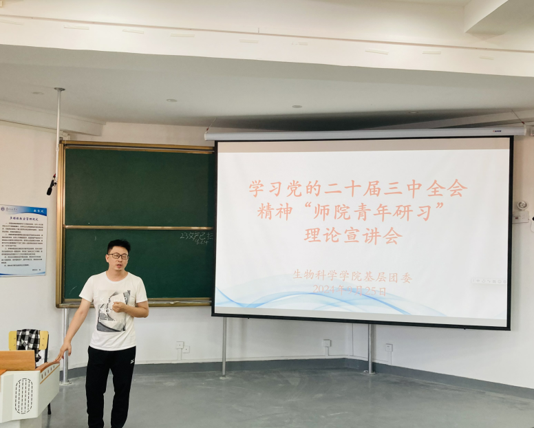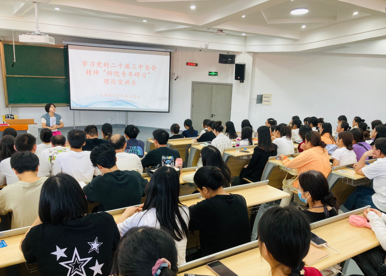 為深入學(xué)習(xí)貫徹黨的二十屆三中全會(huì)精神,進(jìn)一步增強(qiáng)師生的政治意識(shí)和理論素養(yǎng),生物科學(xué)學(xué)院基層團(tuán)委于2024年9月26日在寧?kù)o樓535階梯教室舉行了黨的二十屆三中全會(huì)精神宣講會(huì)。此次宣講會(huì)由學(xué)院黨委副書(shū)記王玨和院團(tuán)委負(fù)責(zé)人梁濤宣講,學(xué)院團(tuán)委學(xué)生會(huì)成員和班團(tuán)干同學(xué)參加。