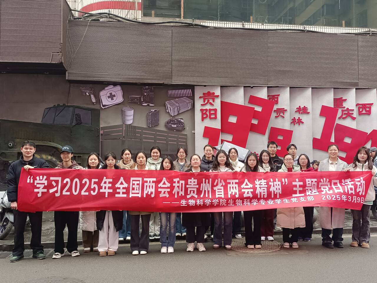 3月9日下午,生物科學學院生物科學專業(yè)學生黨支部全體黨員前往八路軍貴陽交通站舊址,開展“學習2025年全國兩會和貴州省兩會精神”主題黨日活動,旨在傳承紅色基因,踐行兩會精神。