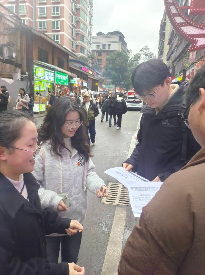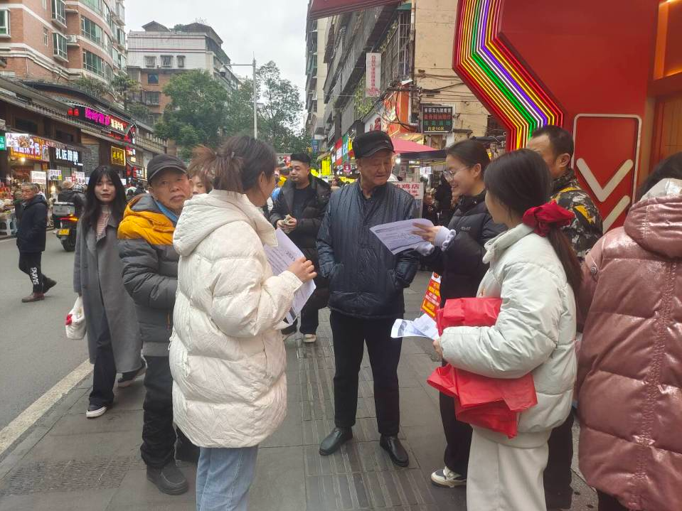 云巖區(qū)中東社區(qū)電臺街有八路軍貴陽交通站舊址,是黨領(lǐng)導(dǎo)人民開展革命斗爭歷史的紅色教育基地。在教育基地周圍的居民區(qū)進行“兩會精神進社區(qū)”宣傳活動,旨在傳承紅色基因、踐行兩會精神。同學(xué)手持宣傳圖表,積極向街頭的群眾們宣傳“兩會的重要精神和決策部署”,用通俗易懂的語言解讀政策要點,解答居民關(guān)心的問題。這一舉措不僅加深了普通民眾對國家大政方針的理解,也進一步增強了同學(xué)們自身的使命感和責(zé)任心。