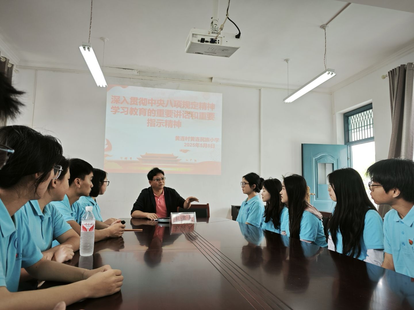 活動(dòng)伊始,黃連村民族小學(xué)周校長(zhǎng)帶領(lǐng)全體學(xué)生黨員開展學(xué)習(xí),學(xué)習(xí)內(nèi)容為2025年3月習(xí)近平總書記在貴州、云南考察時(shí)關(guān)于深入貫徹中央八項(xiàng)規(guī)定精神學(xué)習(xí)教育的重要講話和重要指示精神。