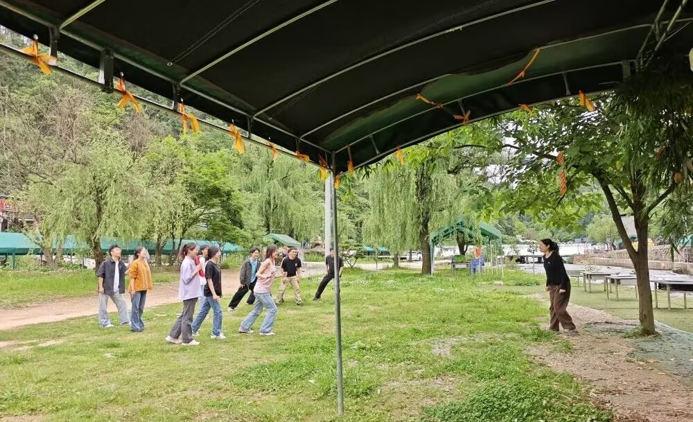 “丟”手絹,“老鷹捉小雞”、“三二一木頭人”等童年趣味活動,讓大家在綠色山水間放松心情、開懷大笑,點燃活動效果。