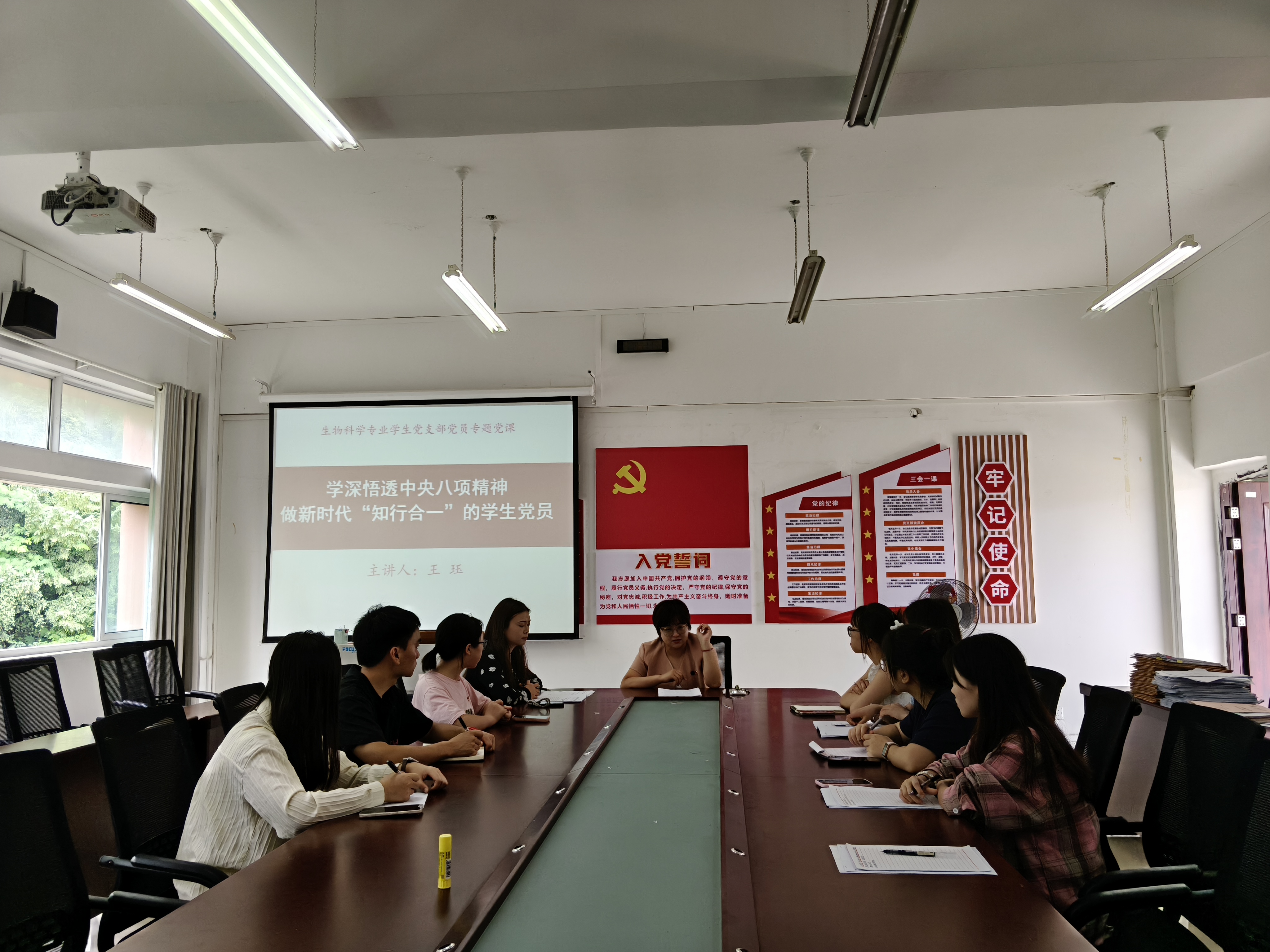 為進(jìn)一步加強(qiáng)學(xué)生黨員作風(fēng)建設(shè),6月20日上午,生物科學(xué)專業(yè)學(xué)生黨支部開展“學(xué)深悟透中央八項(xiàng)規(guī)定精神,做新時(shí)代‘知行合一’的學(xué)生黨員”專題黨課。學(xué)院黨委副書記王玨主講,學(xué)生黨員、及部分入黨積極分子參加學(xué)習(xí)。