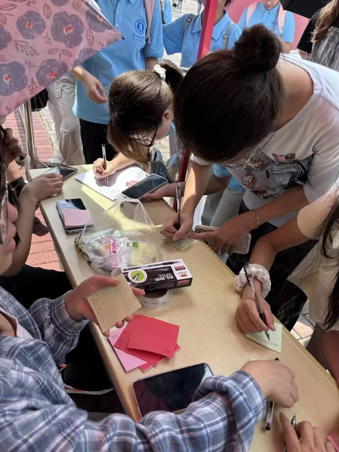活動現(xiàn)場,通過現(xiàn)場制作教師節(jié)賀卡、在活動展板上撰寫教師職業(yè)認(rèn)知關(guān)鍵詞,吸引了眾多同學(xué)參與。同學(xué)們紛紛發(fā)揮創(chuàng)意,在賀卡上寫下對老師的真摯祝福與感恩話語,有的還繪制了精美的圖案,每一筆每一劃都飽含著深情。在活動展板前,大家認(rèn)真思考,寫下諸如“敬業(yè)”“奉獻(xiàn)”“啟迪智慧”等教師職業(yè)認(rèn)知關(guān)鍵詞,表達(dá)對教師這一神圣職業(yè)的理解與敬意。