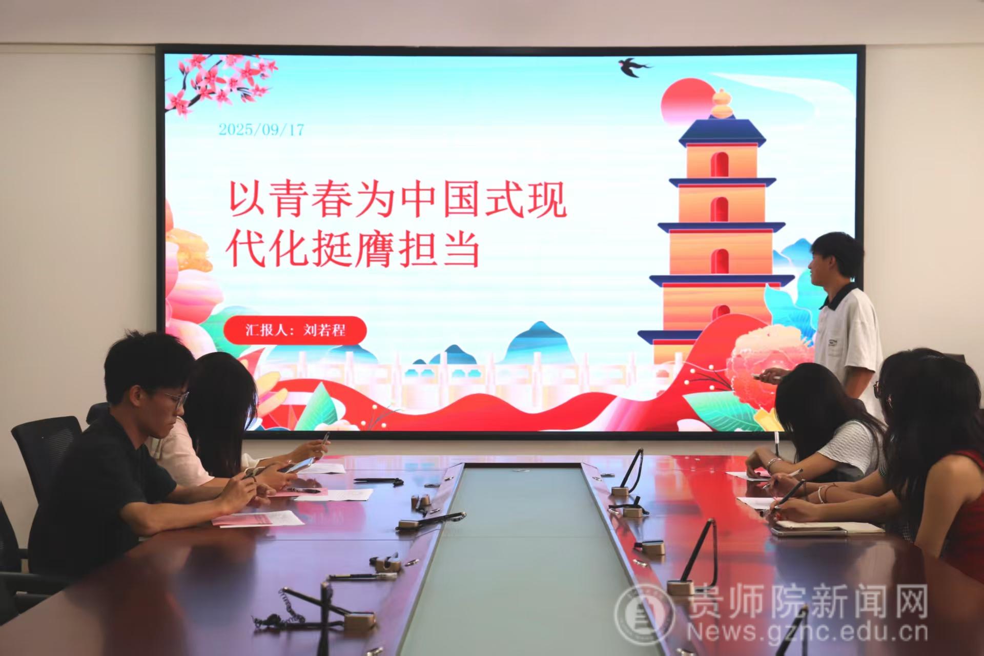 團課中,各團支部分工協(xié)作、亮點紛呈。24級應生一班團支部聚焦西江千戶苗寨,講述當?shù)厍嗄晖苿用缋C、銀飾鍛造等非遺從“小作坊零散干”到“產業(yè)鏈抱團闖”的轉型,通過非遺主題民宿等創(chuàng)新實踐,為鄉(xiāng)村振興注入青春動能;24生物科學班團支部以遵義會議和長征精神為核心,介紹有志青年用紅色主題直播、沉浸式研學活化紅色文化的做法,闡釋長征精神對青年學業(yè)科研的激勵作用;24野保班團支部和24應生二班團支部則圍繞“中國式現(xiàn)代化的內涵與時代意義”等三大板塊,從理論層面剖析核心要義,結合實踐案例展現(xiàn)青春與時代的同頻共振。