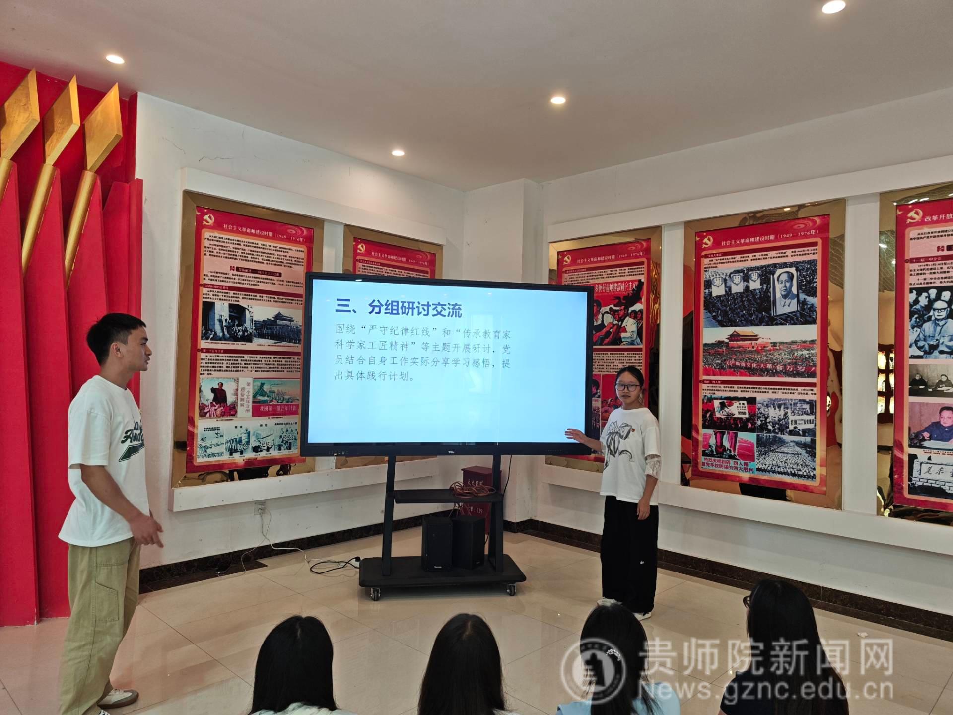 活動(dòng)伊始,主持人學(xué)生黨員張濤介紹了本次黨課的背景和目的。在全面建設(shè)社會(huì)主義現(xiàn)代化國(guó)家的新征程中,教育、科技、人才三位一體的戰(zhàn)略地位日益凸顯,高校作為人才培養(yǎng)和科技創(chuàng)新的主陣地,面臨著重大使命,亟需以嚴(yán)明的紀(jì)律作風(fēng)筑牢思想根基,以科學(xué)家精神涵養(yǎng)創(chuàng)新品格。隨后,全體黨員集中觀看了匡亞明、唐敖慶等教育家的事跡,直觀感受榜樣的奮斗歷程與精神風(fēng)貌。在分組研討交流環(huán)節(jié),黨員們圍繞“嚴(yán)守紀(jì)律紅線”和“傳承教育家科學(xué)家工匠精神”等主題展開了熱烈討論,結(jié)合自身實(shí)際分享學(xué)習(xí)感悟,并提出了具體的踐行計(jì)劃。