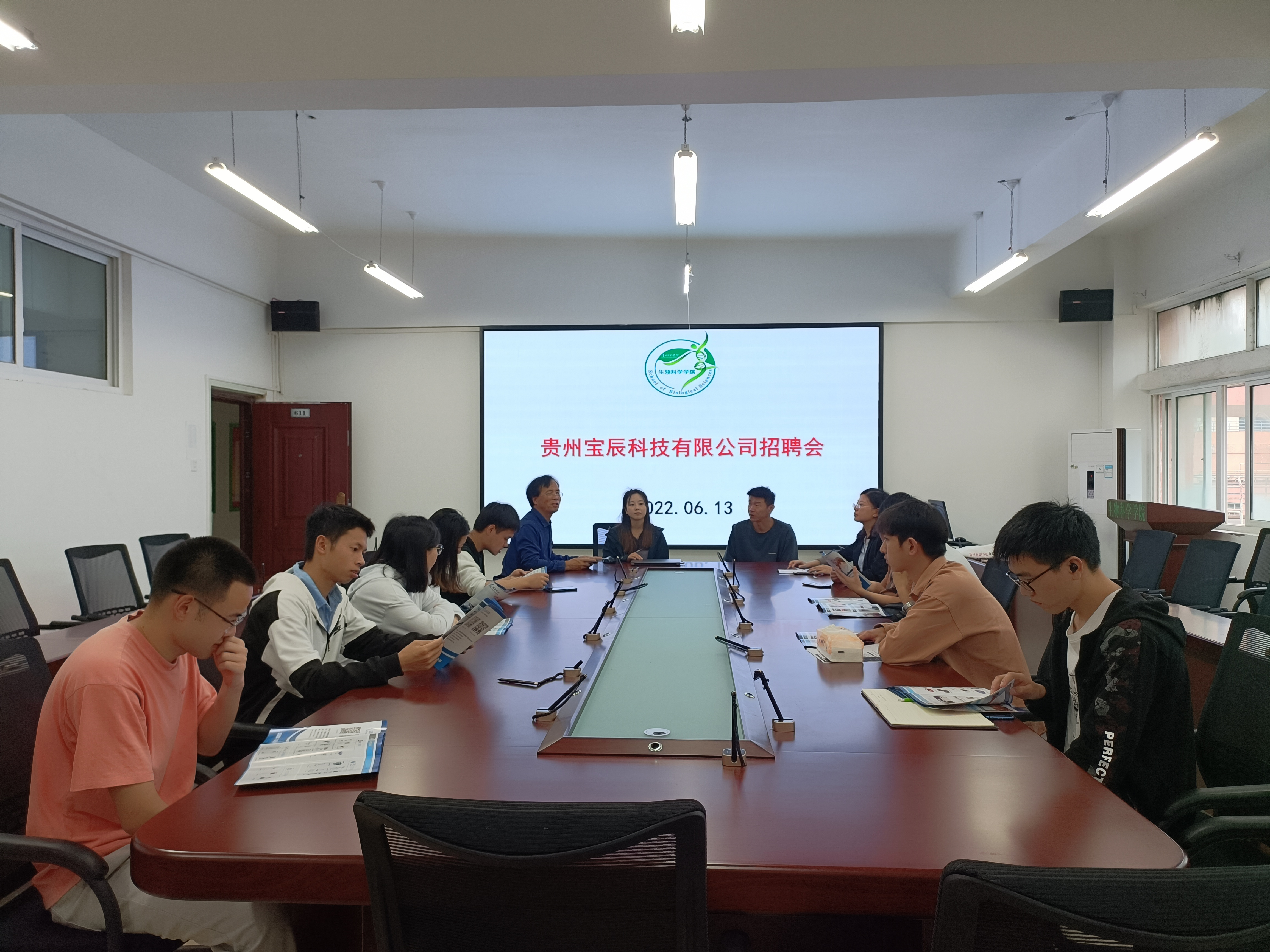 4月20日上午10點,在生物科學(xué)學(xué)院寧靜樓511教室行了“貴州寶辰科技有限公司現(xiàn)場招聘會”。寶辰公司兩位招聘工作負(fù)責(zé)人、生物科學(xué)學(xué)院黨委書記孫秀華、2025屆部分畢業(yè)生參加了本次招聘會。