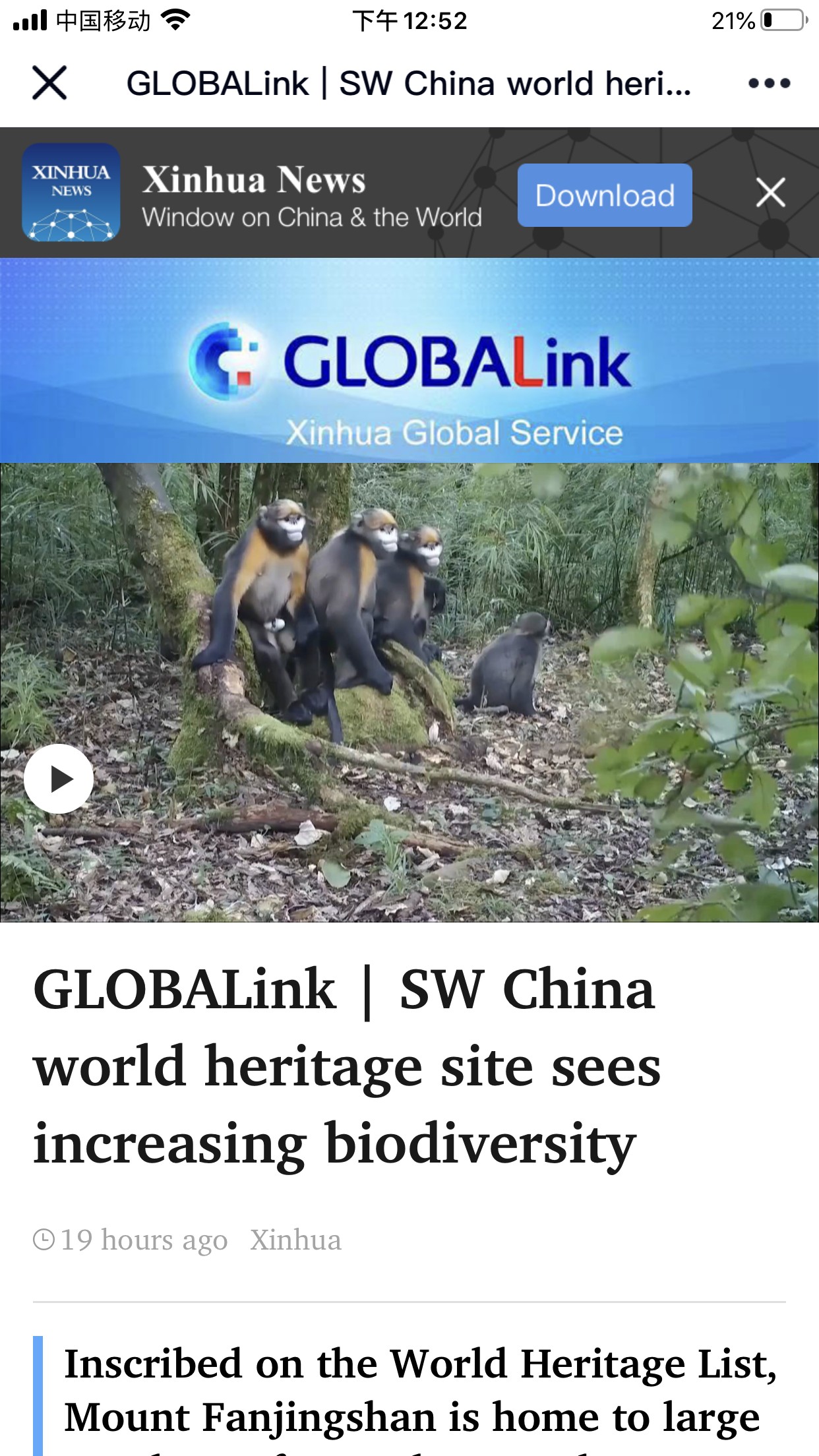附微信地址:GLOBALink | SW China world heritage site sees increasing biodiversity