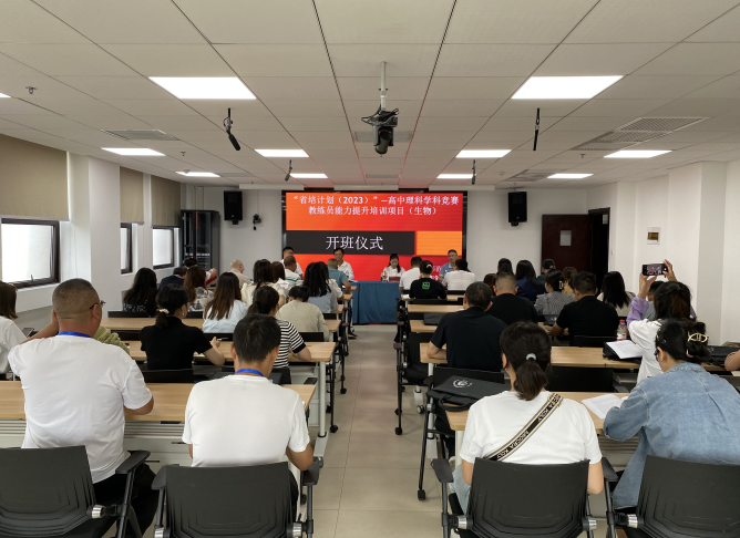 9月4日下午,我校“省培計(jì)劃(2023)”-高中理科學(xué)科競(jìng)賽教練員能力提升培訓(xùn)項(xiàng)目(生物)開班典禮于綜合樓14-2樓教室廳隆重舉行。校黨委委員、副校長(zhǎng)鄒曉青出席儀式,生物科學(xué)學(xué)院黨委書記孫秀華、院長(zhǎng)劉訊、副院長(zhǎng)錢長(zhǎng)江、培訓(xùn)班班主任程搏幸博士、全體參訓(xùn)學(xué)員參加活動(dòng)。典禮由生物科學(xué)學(xué)院院長(zhǎng)劉訊主持。