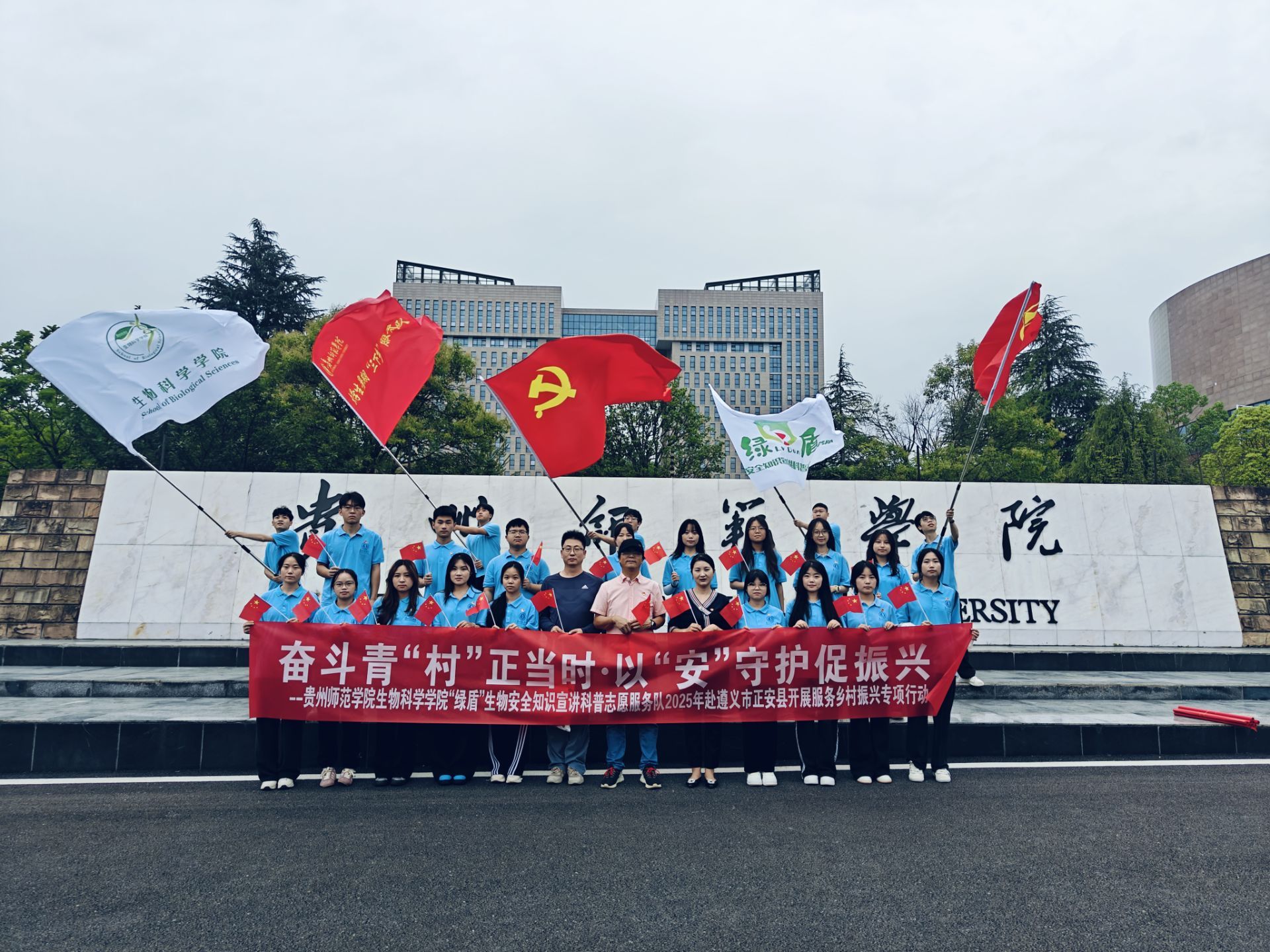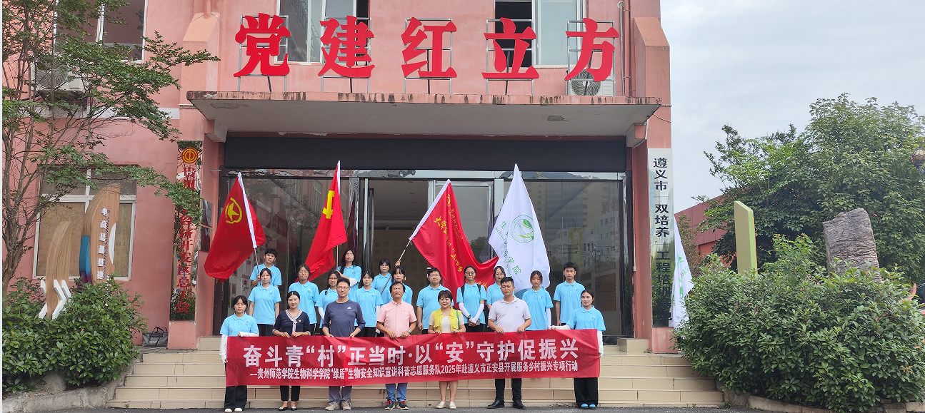 為深入學(xué)習(xí)貫徹習(xí)近平新時(shí)代中國(guó)特色社會(huì)主義思想和黨的二十大精神,學(xué)習(xí)宣傳貫徹習(xí)近平總書記在貴州考察時(shí)的重要講話精神,引導(dǎo)和幫助青年學(xué)生在社會(huì)課堂中受教育、長(zhǎng)才干、作貢獻(xiàn),爭(zhēng)做有理想、敢擔(dān)當(dāng)、能吃苦、肯奮斗的新時(shí)代好青年,7月9日,貴州師范學(xué)院生物科學(xué)學(xué)院組建的“綠盾”生物安全宣講科普志愿服務(wù)隊(duì)、“青耕”志愿服務(wù)隊(duì)共28人赴遵義市正安縣開展2025年貴州省大學(xué)生暑期文化科技衛(wèi)生“三下鄉(xiāng)”社會(huì)實(shí)踐專項(xiàng)活動(dòng),在紅色教育中淬煉初心,在產(chǎn)業(yè)一線探尋鄉(xiāng)村振興密碼。