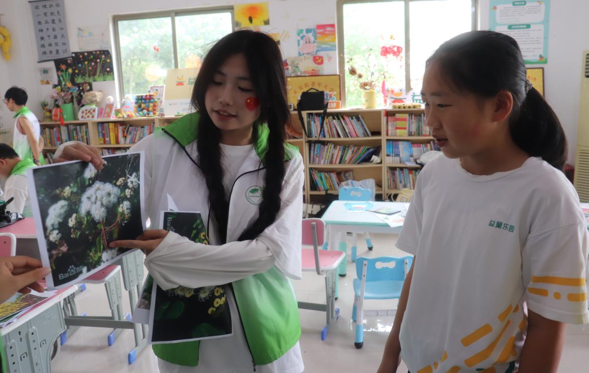 填色結(jié)束后,志愿者曾江笑著舉起手中的“奮斗青春正當(dāng)時,以‘安’守護(hù)促振興”生物入侵知識手冊:“小朋友們好呀!今天我要給大家講一個有趣又重要的話題——生物入侵。