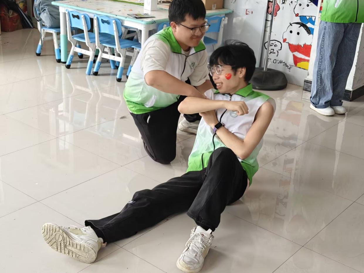 舞臺上,農(nóng)夫痛苦地躺在地上,手臂上的“蛇咬傷口”清晰可見。鄰居匆忙趕來,先是學(xué)著武俠劇里的樣子,夸張地俯身用嘴吸吮傷口——“停!這是錯誤的!”旁白及時喊停,“如果施救者嘴里有潰瘍,毒液會鉆進(jìn)身體哦!”只見“鄰居”突然捂住脖子倒地,逼真的“中毒”模樣讓臺下小朋友們驚呼起來。