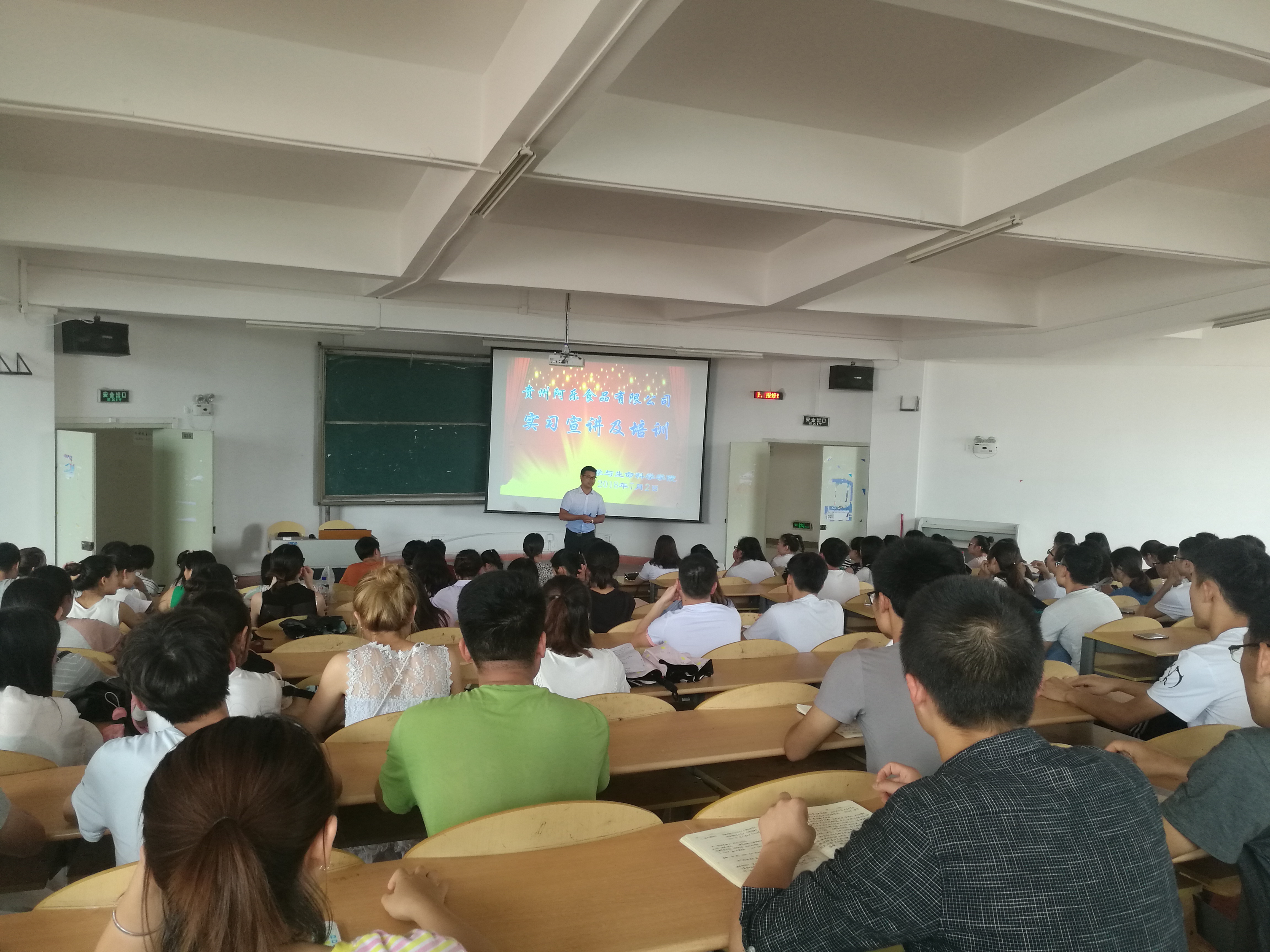 為更好推進學生實習及就業(yè),讓學生更好了解實習工作及職業(yè)選擇,做好實習職前準備,7月2日,化生學院邀請貴州阿樂食品有限公司在寧靜樓536教室為2019屆應(yīng)用化學專業(yè)學生做實習職前宣講及培訓(xùn),化生學院應(yīng)用化學專業(yè)負責人龍攀峰、實踐教學管理辦公室負責人吳超、2015級應(yīng)用化學專業(yè)全體學生參加活動。
