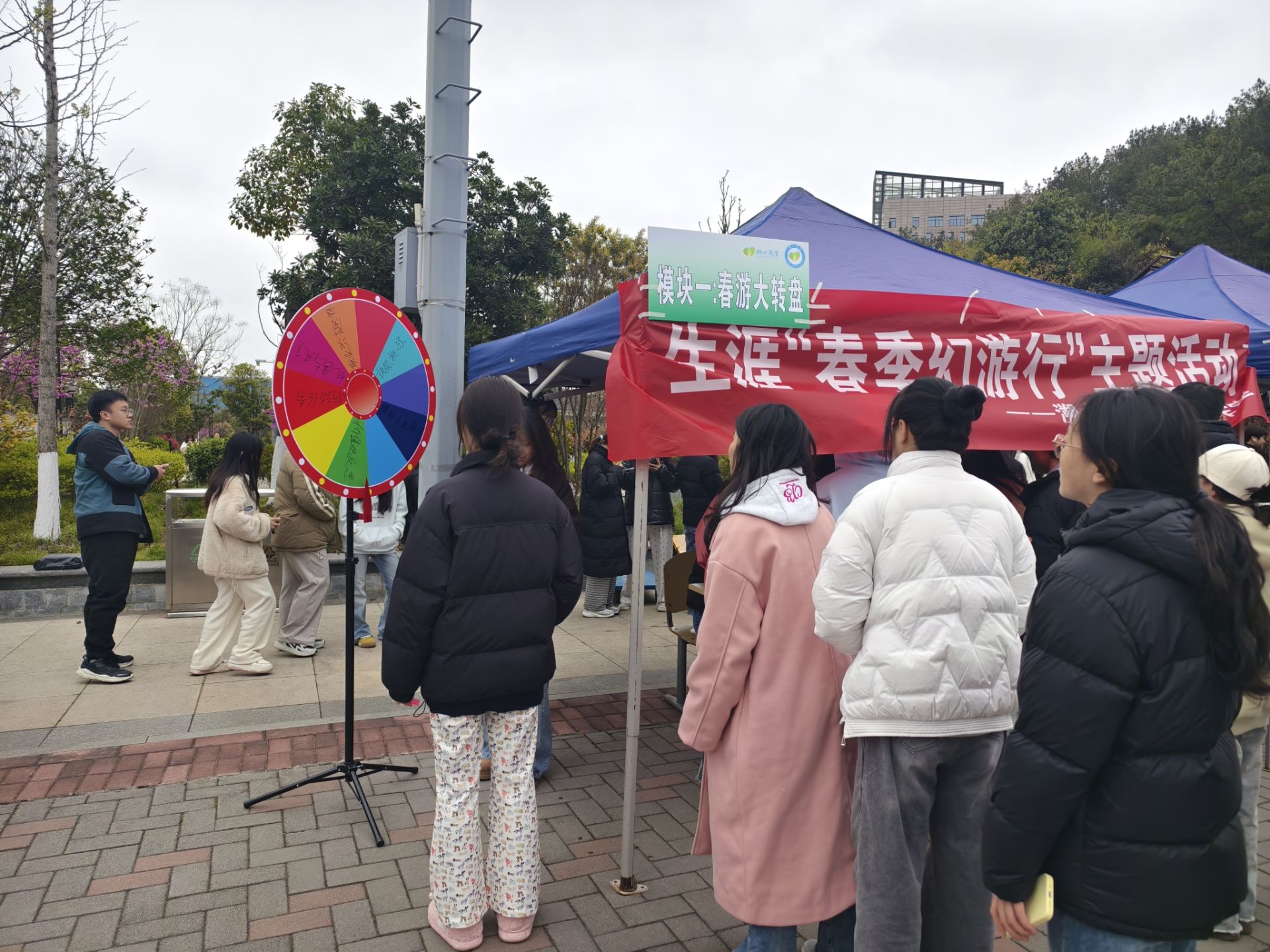 活動(dòng)環(huán)節(jié)的設(shè)計(jì)更是獨(dú)具匠心,充滿(mǎn)趣味。“春游大轉(zhuǎn)盤(pán)”環(huán)節(jié)成為了學(xué)生們熱衷參與的項(xiàng)目。參與者只需輕松掃碼關(guān)注公眾號(hào),就能獲得轉(zhuǎn)動(dòng)大轉(zhuǎn)盤(pán)的機(jī)會(huì)。大轉(zhuǎn)盤(pán)被巧妙地劃分為多個(gè)扇形區(qū)域,涵蓋了職業(yè)興趣探索、技能挑戰(zhàn)、模擬人生選擇、價(jià)值觀反思、行動(dòng)任務(wù)、機(jī)遇與風(fēng)險(xiǎn)等多個(gè)生涯探索維度。在轉(zhuǎn)動(dòng)轉(zhuǎn)盤(pán)的過(guò)程中,同學(xué)們仿佛開(kāi)啟了一場(chǎng)奇妙的職業(yè)探索之旅。