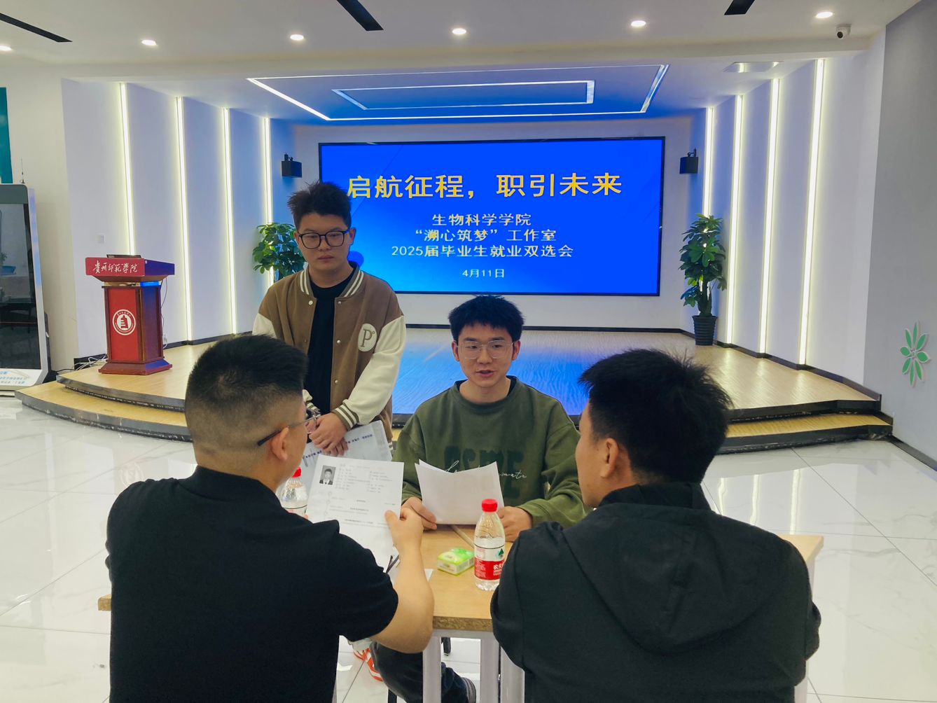 2025年4月11日上午十點(diǎn),生物科學(xué)學(xué)院在大學(xué)生事務(wù)中心舉辦主題為"啟航征程·職印未來"的2025屆畢業(yè)生專場招聘會。學(xué)院黨委書記孫秀華、院長任翠娟、黨委副書記王玨、副院長孟澤彬、副院長錢長江、畢業(yè)班輔導(dǎo)員、教師代表出席活動。