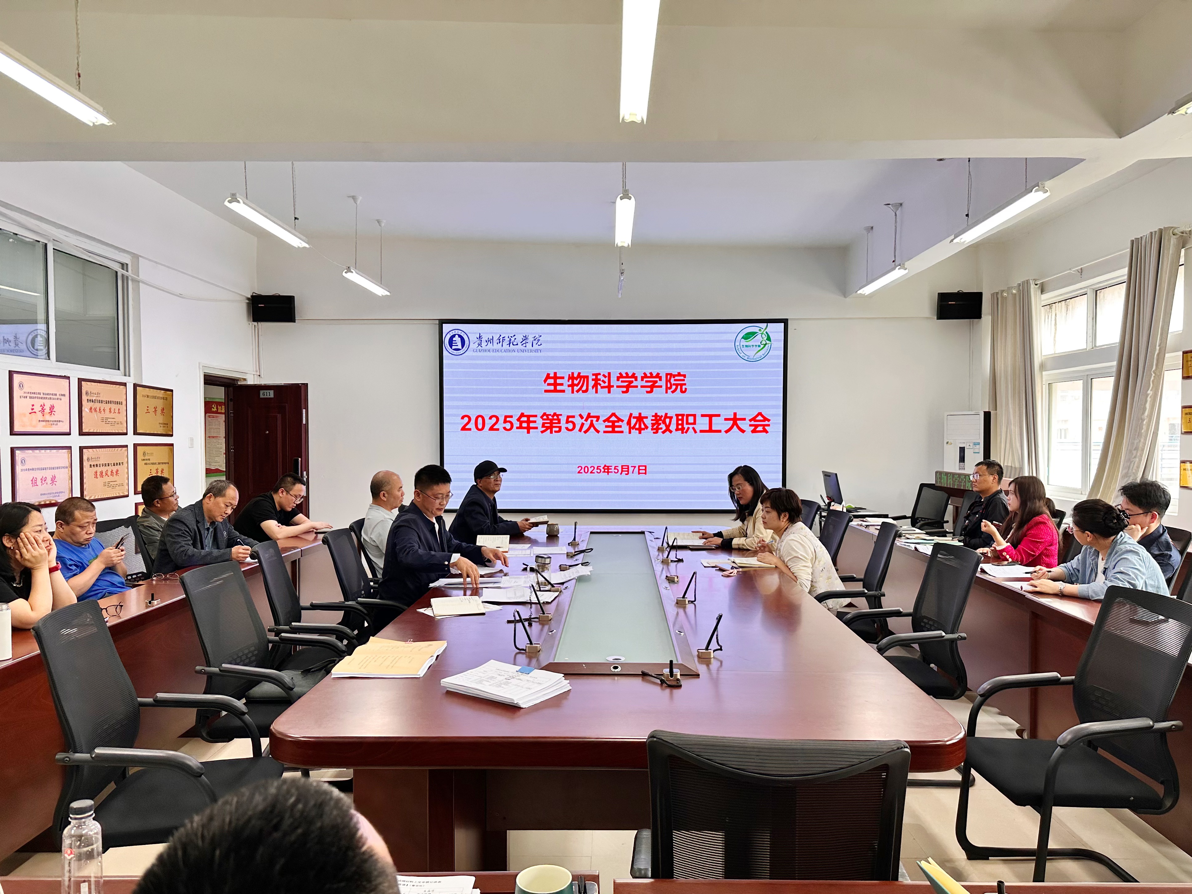 5月7日下午,生物科學學院在寧靜樓611會議室召開2025年第5次全體教職工大會。生物科學學院黨委書記孫秀華、院長任翠娟、黨委副書記王玨、副院長孟澤彬、副院長錢長江以及全體教職工參會,會議由任翠娟主持。