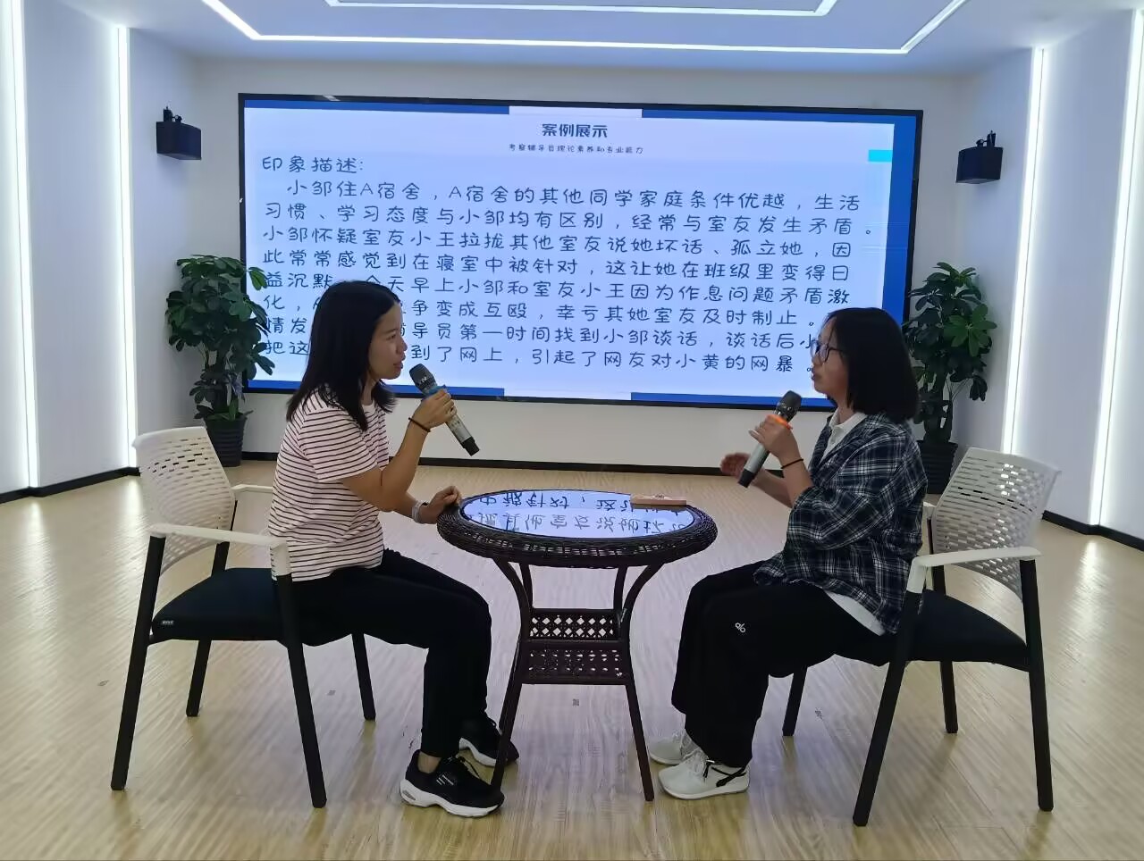 隨后,王溯還組織參加培訓(xùn)的輔導(dǎo)員老師們進(jìn)入談心談話模擬環(huán)節(jié)。以學(xué)生寢室矛盾、追星打榜引發(fā)班級(jí)沖突等貼合學(xué)生實(shí)際的案例為談心談話場(chǎng)景,文傳學(xué)院桑麗娟、美設(shè)學(xué)院陳代威與學(xué)生分別進(jìn)行了實(shí)戰(zhàn)模擬。