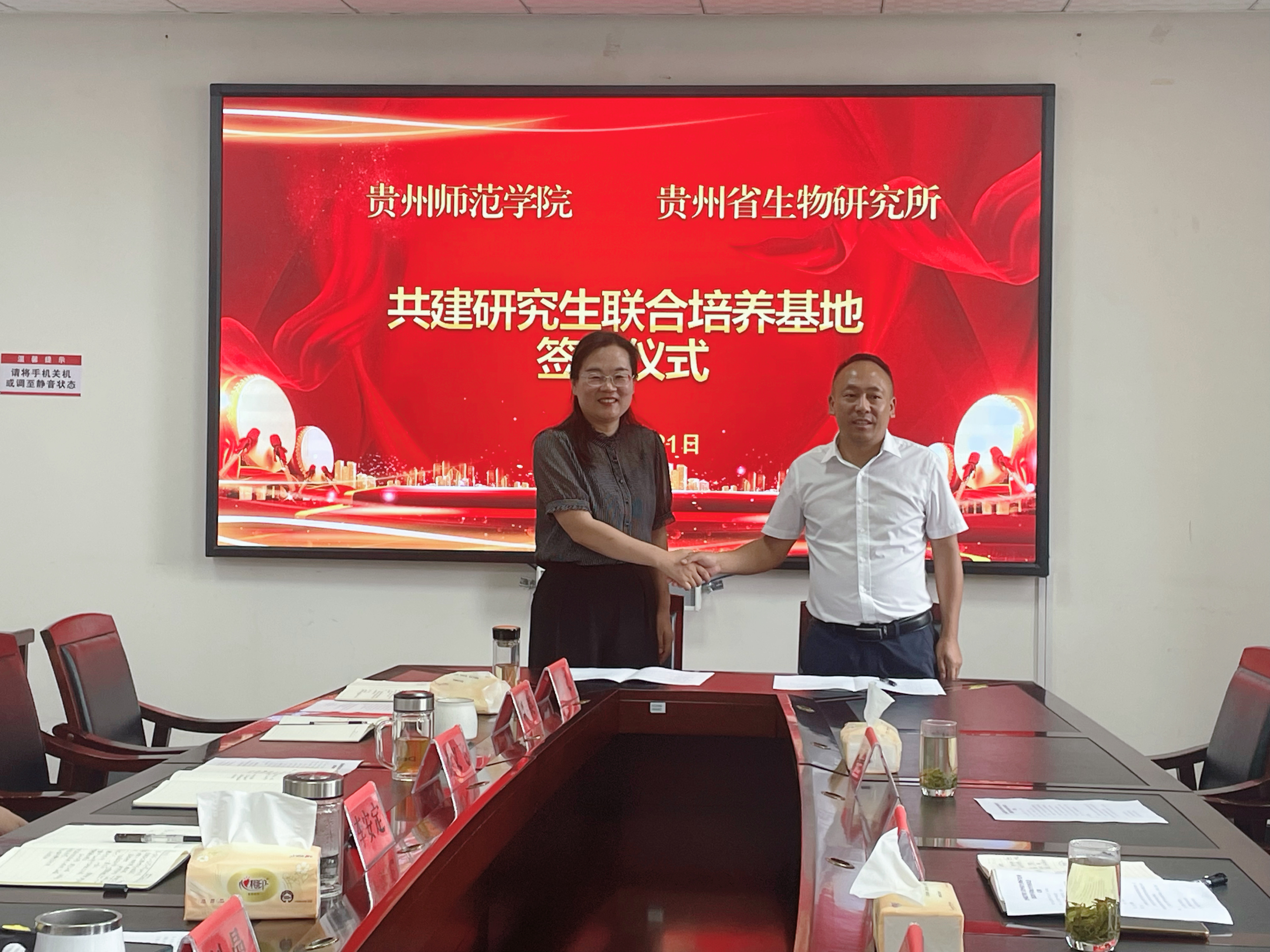 參加活動(dòng)的人員有學(xué)院副院長(zhǎng)錢長(zhǎng)江、教授伍林濤、博士唐阿玲,貴州省生物研究所所長(zhǎng)李安定、黨委副書記謝義飛、副所長(zhǎng)劉曼、副所長(zhǎng)鄧春英、副所長(zhǎng)向準(zhǔn)、黨政辦辦公室主任熬義、科研管理部部長(zhǎng)陳夢(mèng)樓等人員。座談會(huì)由所長(zhǎng)李安定主持,他首先介紹了貴州省生物研究所各研究室情況和研究方向,并對(duì)學(xué)院的真誠(chéng)合作表示衷心感謝,其他領(lǐng)導(dǎo)也表示盡力支持我院的學(xué)位點(diǎn)建設(shè),希望有研究生和本科生到貴州省生物研究所進(jìn)行實(shí)習(xí)實(shí)踐。任翠娟院長(zhǎng)介紹了生物科學(xué)學(xué)院的發(fā)展情況和專業(yè)特色,并表示通過(guò)整合雙方優(yōu)質(zhì)資源,共建研究生培養(yǎng)實(shí)踐基地。副院長(zhǎng)錢長(zhǎng)江介紹了學(xué)院的科研成果和項(xiàng)目,并簡(jiǎn)要說(shuō)明了此次合作意向。座談會(huì)后,簽訂了共建研究生聯(lián)合培養(yǎng)基地協(xié)議。