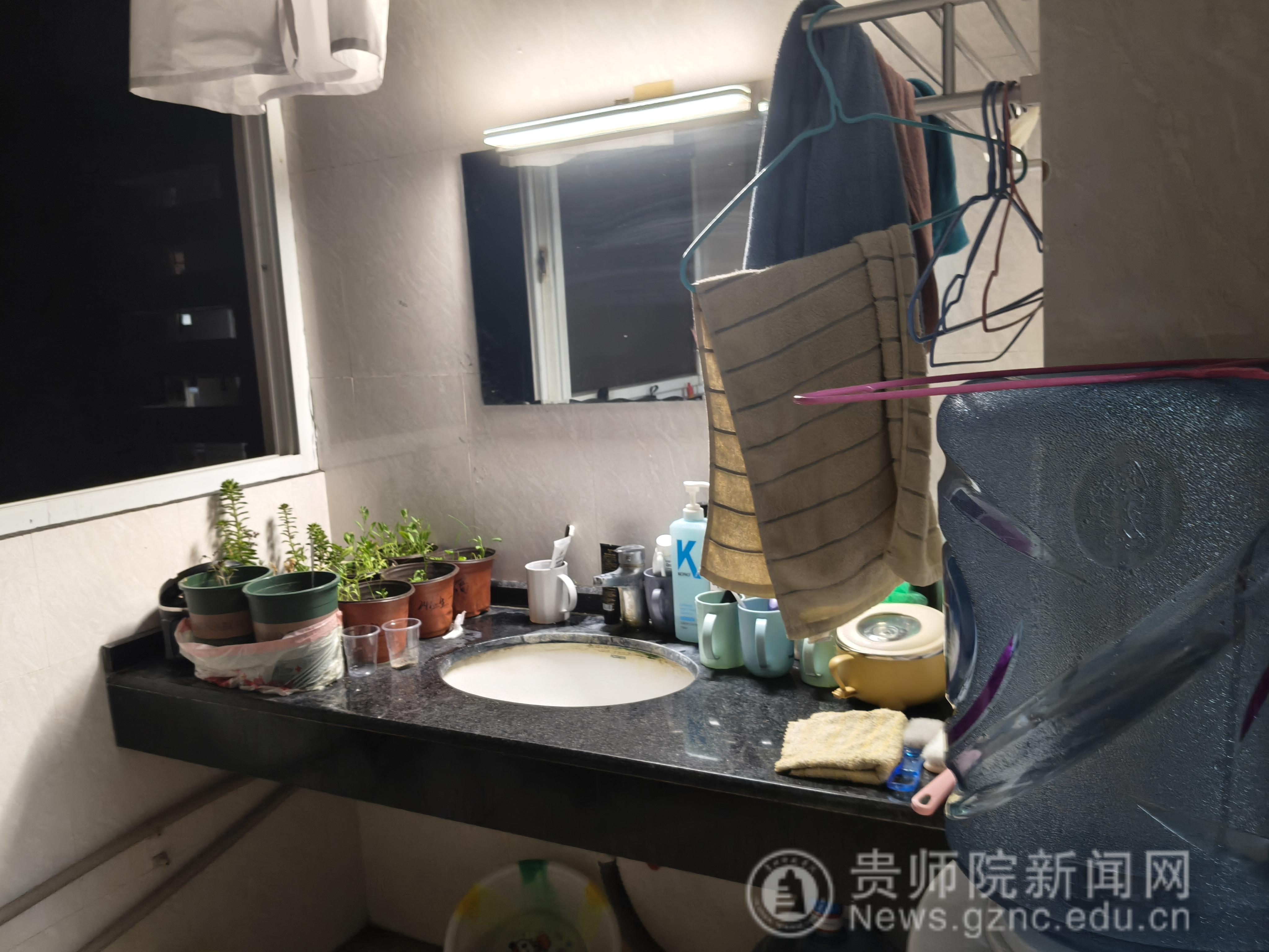敏園1-523空間明亮通透,窗戶潔凈無遮擋,陽光灑滿室內(nèi)。地面光可鑒人,書桌物品各歸其位,床鋪平整如新。公共區(qū)域細(xì)節(jié)講究,洗漱臺(tái)牙具同向排列,陽臺(tái)綠植掛著水珠,垃圾桶套著干凈袋子。“值日生+”制度讓每個(gè)角落都維持整潔,整體空間既顯嚴(yán)謹(jǐn)美學(xué),又藏家的溫暖。