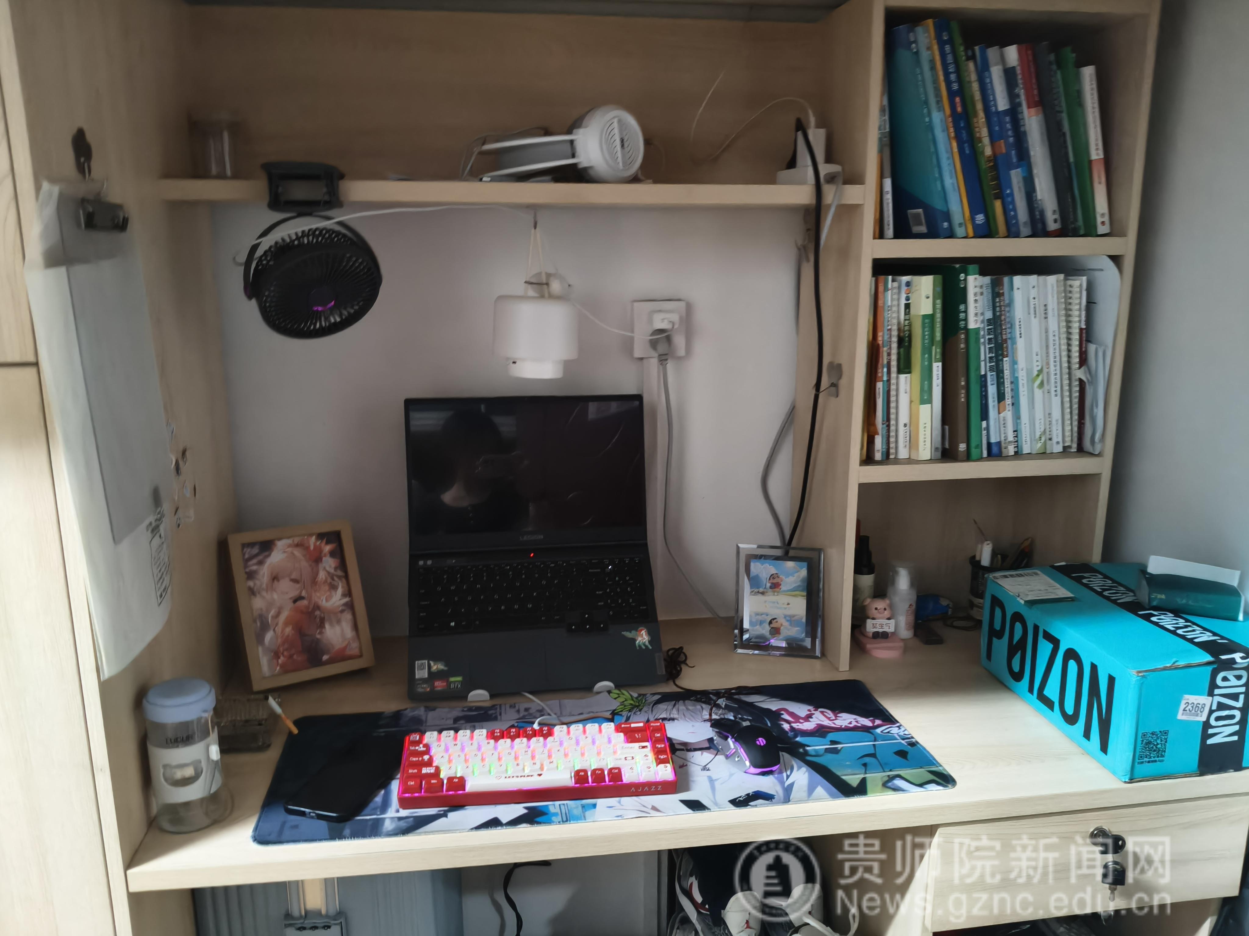 博園410室內(nèi)滿是生活氣息,6張書桌并排鋪開,左角堆著未拼高達(dá),右桌放著新拆球星卡,中間書架兼顧專業(yè)課本與游戲碟,窗臺(tái)擠著多肉與手辦。公共區(qū)域里,清晨有遞水、提醒帶鑰匙的互動(dòng),深夜臥談聲與笑聲回蕩,周末或見組隊(duì)開黑的身影,或有大掃除后慶祝的熱鬧,處處是6人共居的鮮活感。