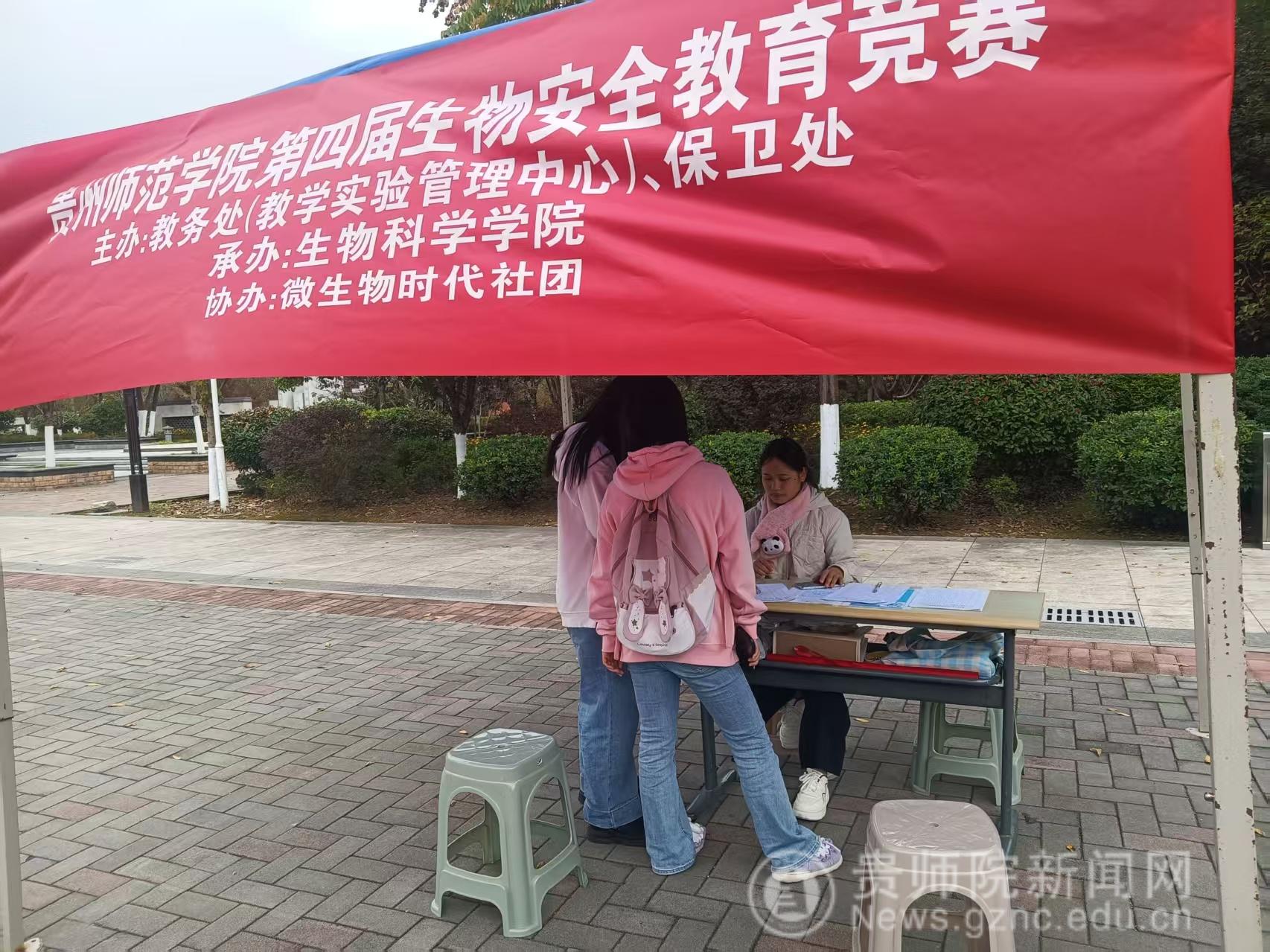 本網(wǎng)訊 微生物時代協(xié)會于11月17日至11月20日,貴州師范學院鑒湖旁舉行第四屆“生物安全筑防線,青春實踐創(chuàng)未來”教育賽事宣傳及生物安全知識大賽線下初賽。由教務處和保衛(wèi)處主辦、生物科學學院承辦、微生物時代協(xié)會協(xié)辦。他們搭起“安全知識棚子”,掃碼答題、線下報名及徽章獎勵等互動項目吸引不少師生駐足。線上QQ咨詢群人數(shù)也是直線上升,話題討論上萬條。