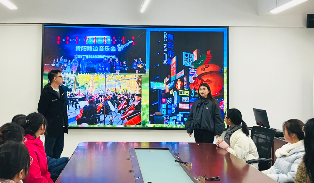 “這本書跟咱們貴州的老百姓,跟咱們每天的生活有什么關(guān)系?”宣講伊始,王溯便拋出問題,引導(dǎo)大家思考。隨后,兩人緊扣《習(xí)近平談治國理政》第五卷中關(guān)于“中國式現(xiàn)代化”的核心論述,從“脫貧攻堅”到“鄉(xiāng)村振興”,從“地?zé)o三尺平”到“高速平原”,層層遞進地展開對話。王溯和梁濤兩名老師結(jié)合自身作為輔導(dǎo)員及土生土長貴州人的經(jīng)歷,深情講述了貴州徹底撕掉絕對貧困標簽的感人故事。“以前上學(xué)要走兩小時山路,現(xiàn)在坐15分鐘鄉(xiāng)村公交就到了。”他引用學(xué)生的真實案例,生動詮釋了“教育阻斷貧困代際傳遞”的深刻道理。在談及貴陽地鐵建設(shè)、避暑旅游熱、“路邊音樂會”等身邊變化時,他用“爽爽的貴陽”、“地下長龍”、“松弛感”等接地氣的語言,讓師生們真切感受到了“高質(zhì)量發(fā)展”和“生態(tài)文明建設(shè)”帶來的實惠。