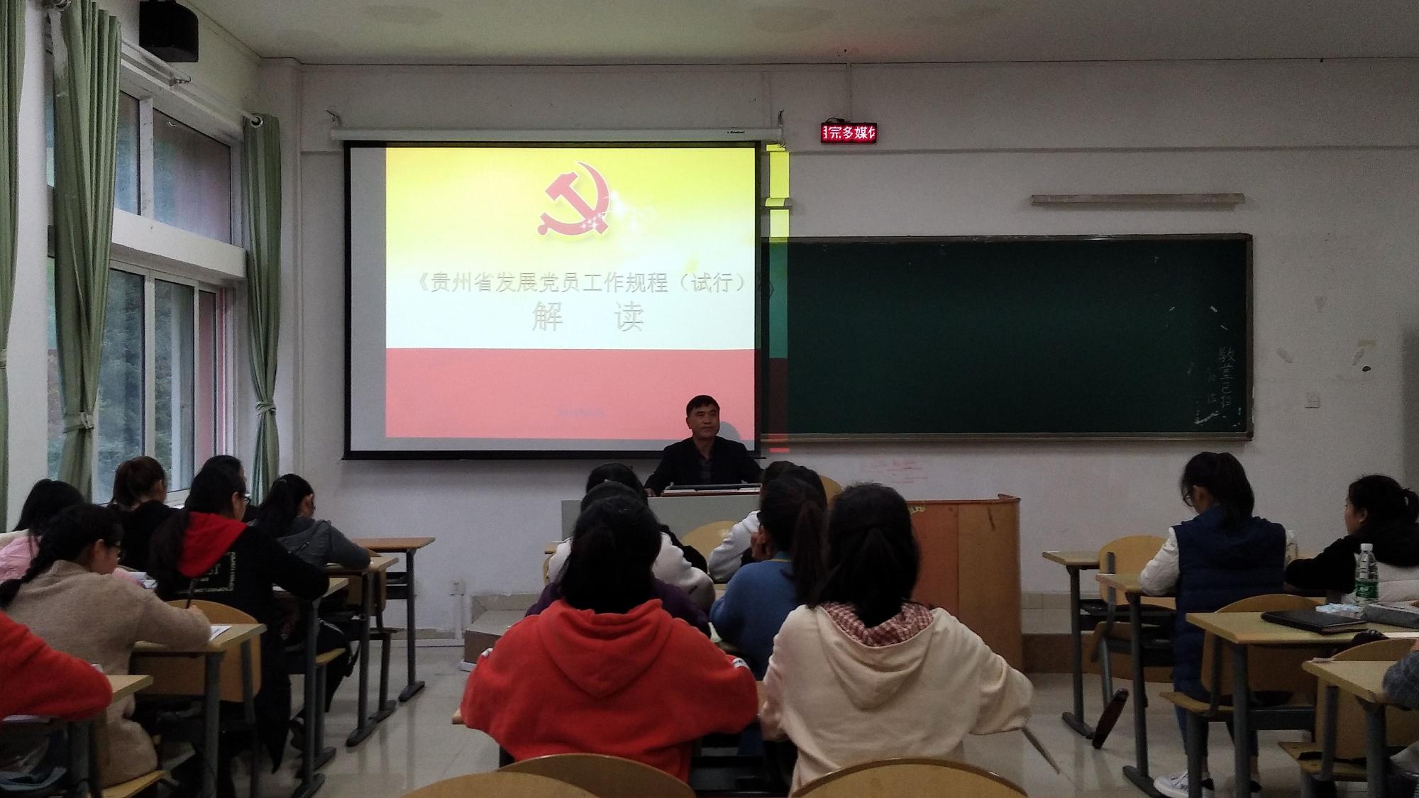 為了切實(shí)做好嚴(yán)格發(fā)展黨程序,保證發(fā)展黨員質(zhì)量。10月15日生物科學(xué)學(xué)院院黨委王剛書記在致遠(yuǎn)樓505教室對(duì)本期入黨積極分子進(jìn)行《貴州省發(fā)展黨員工作規(guī)程(試行)》解讀專題培訓(xùn)。