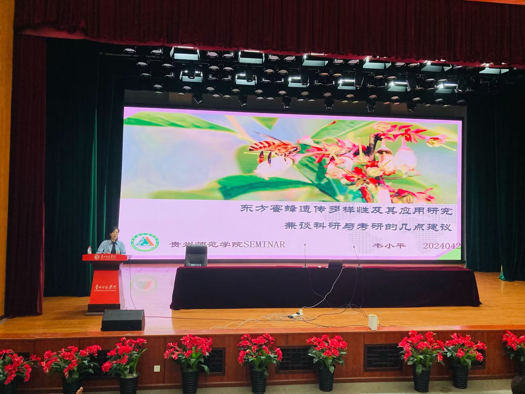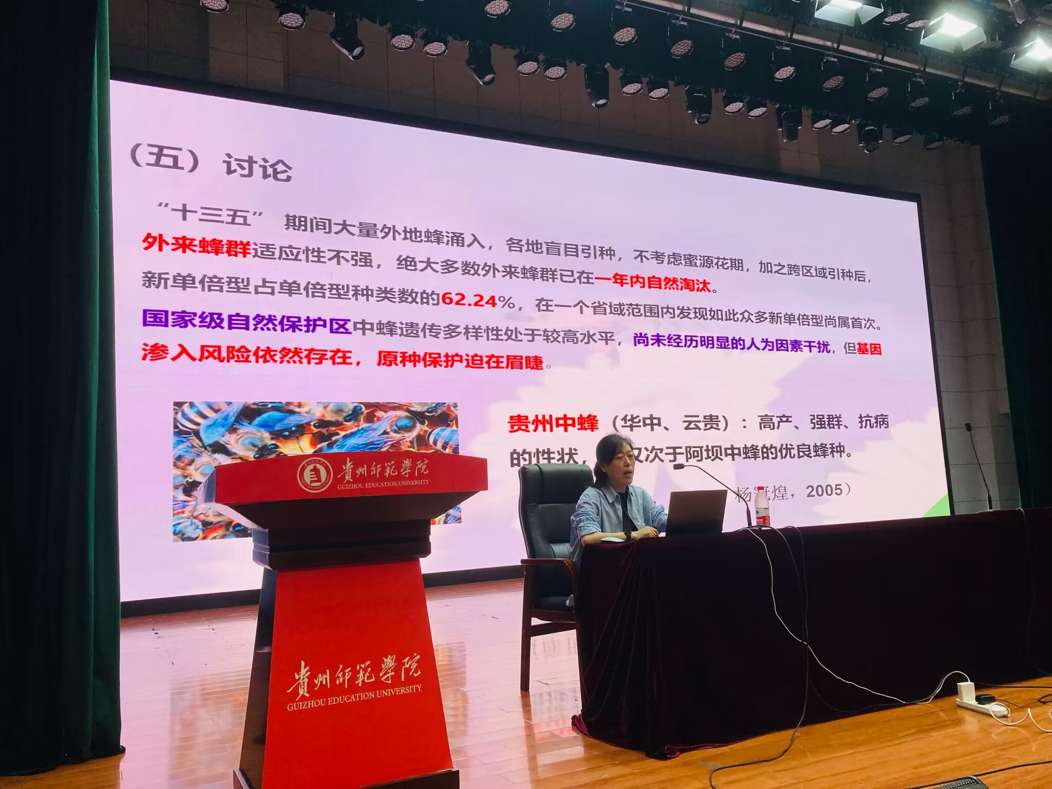 下午,學院邀請到貴州省農業(yè)科學院現代農業(yè)發(fā)展研究所,副所長、國家現代蜂產業(yè)技術體系綜合試驗站站長、貴州省畜牧標準委員會委員韋小平研究員在逸夫樓演播廳開展“東方蜜蜂遺傳多樣性在特色農業(yè)產業(yè)中的應用研究”的專題講座。韋小平通過深入淺出對貴州蜂產業(yè)的講解,讓同學們拓寬了綠水青山轉化金山銀山的實現路徑,更加堅定了要用所學的專業(yè)知識更好的服務鄉(xiāng)村振興,助力家鄉(xiāng)產業(yè)發(fā)展。