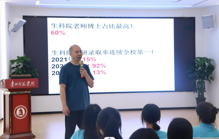 副院長孟澤彬介紹學(xué)院學(xué)習(xí)方面的基本概況,現(xiàn)場了解各位同學(xué)報(bào)考專業(yè)的初衷,對專業(yè)的認(rèn)識。以生物學(xué)科領(lǐng)軍人才為例,希望大家將生物學(xué)科與別的學(xué)科聯(lián)系起來,擴(kuò)寬自己的視野,向優(yōu)秀的前輩學(xué)習(xí),成為專業(yè)的人才。