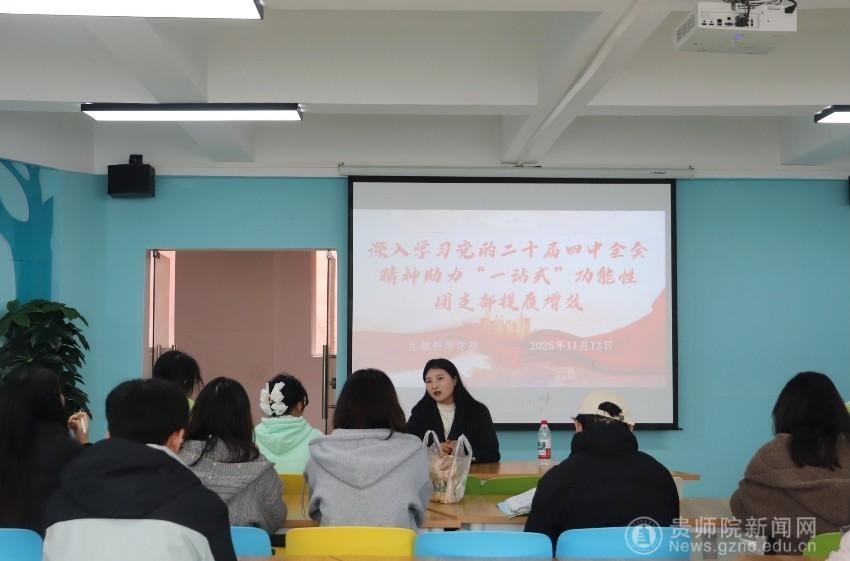為深入學習黨的二十屆四中全會精神,推動“一站式”功能性團支部提質(zhì)增效,11月13日中午,生物科學學院主席團及見習近平總書記團成員齊聚溯心筑夢工作室,開展專題學習研討活動,活動由團委老師張彩艷領(lǐng)學。