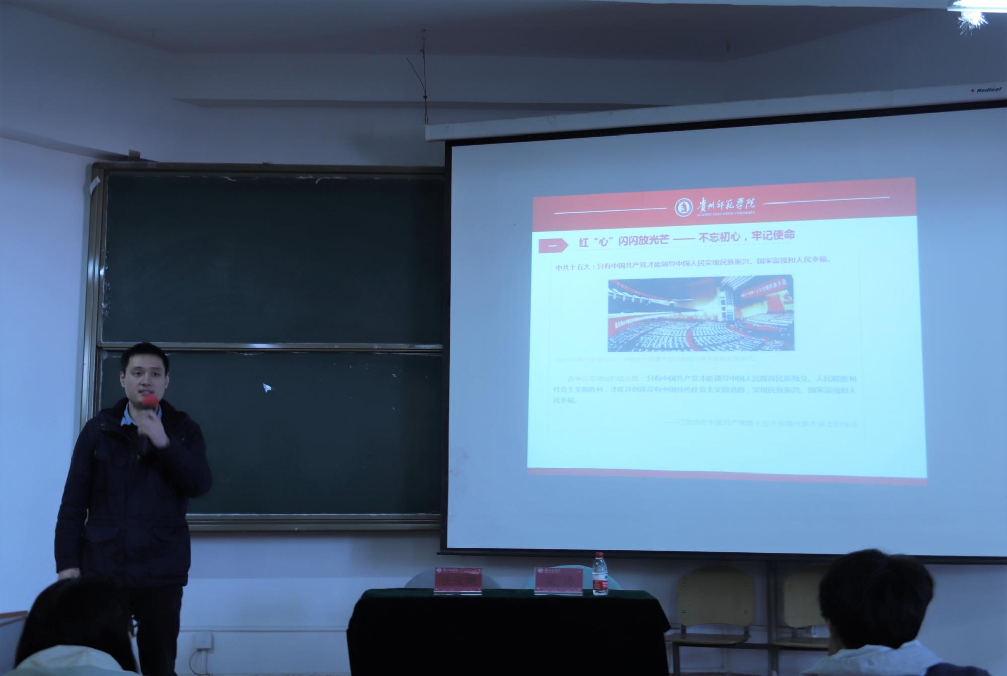 化學(xué)與材料學(xué)院團(tuán)委副書記任俊鵬致開幕辭并授課